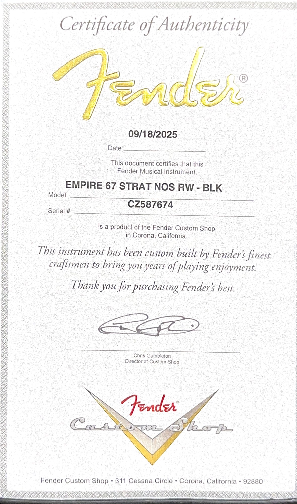 The Empire ‘67 Stratocaster is one of the most sought after and best-selling Fender Custom Shop models in the world. Designed by Empire’s own guitar experts and built by the master craftsmen at Fender Custom Shop, the Empire Music Exclusive ‘67 Stratocaster guitars have become a true classic.