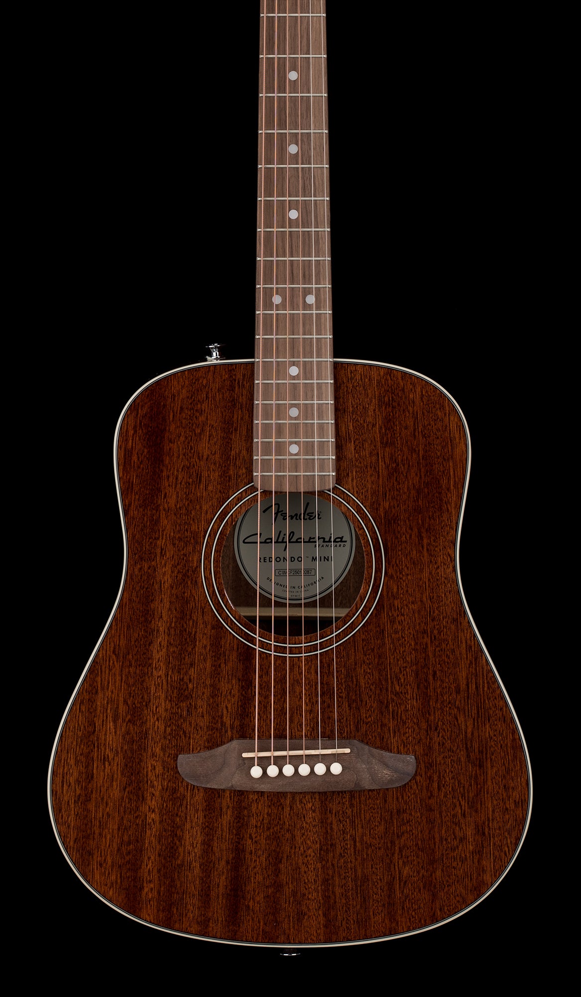 The miniature dreadnought size is compact and approachable, a perfect option for travelers or smaller players at every stage of their musical journey. The California Standard Redondo™ Mini Sapele Top features resilient laminate construction with a sapele top, back, and sides for impressive and satisfying tonal character, while a short 22 ¾” scale neck with a slim “C”-shaped profile provides an inviting and effortless playing feel. Other noteworthy details include an oiled walnut fingerboard and bridge, sealed gear tuning machines for smooth and accurate tuning action, and a sleek long-lasting gloss finish.