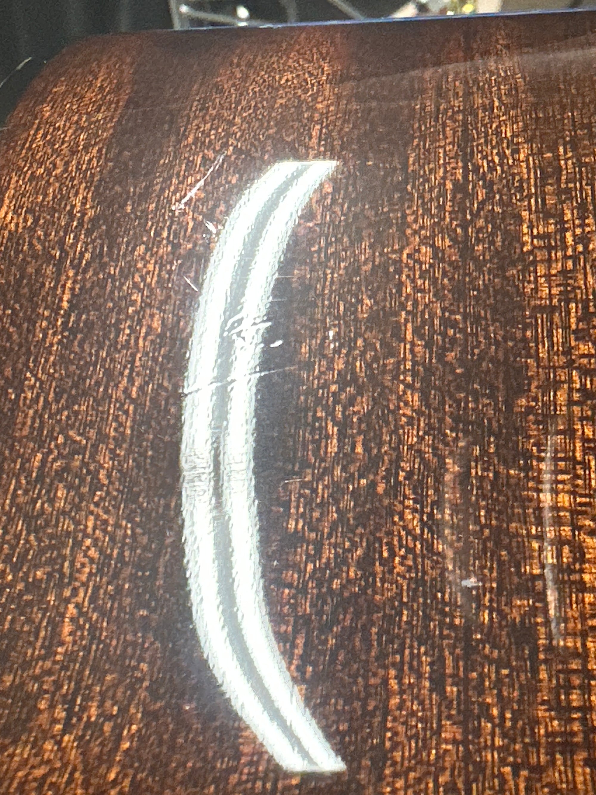 Note: After close inspection, this instrument has impressions on the top and high E string upper side of body. (See pics, light reflections used to show wear)