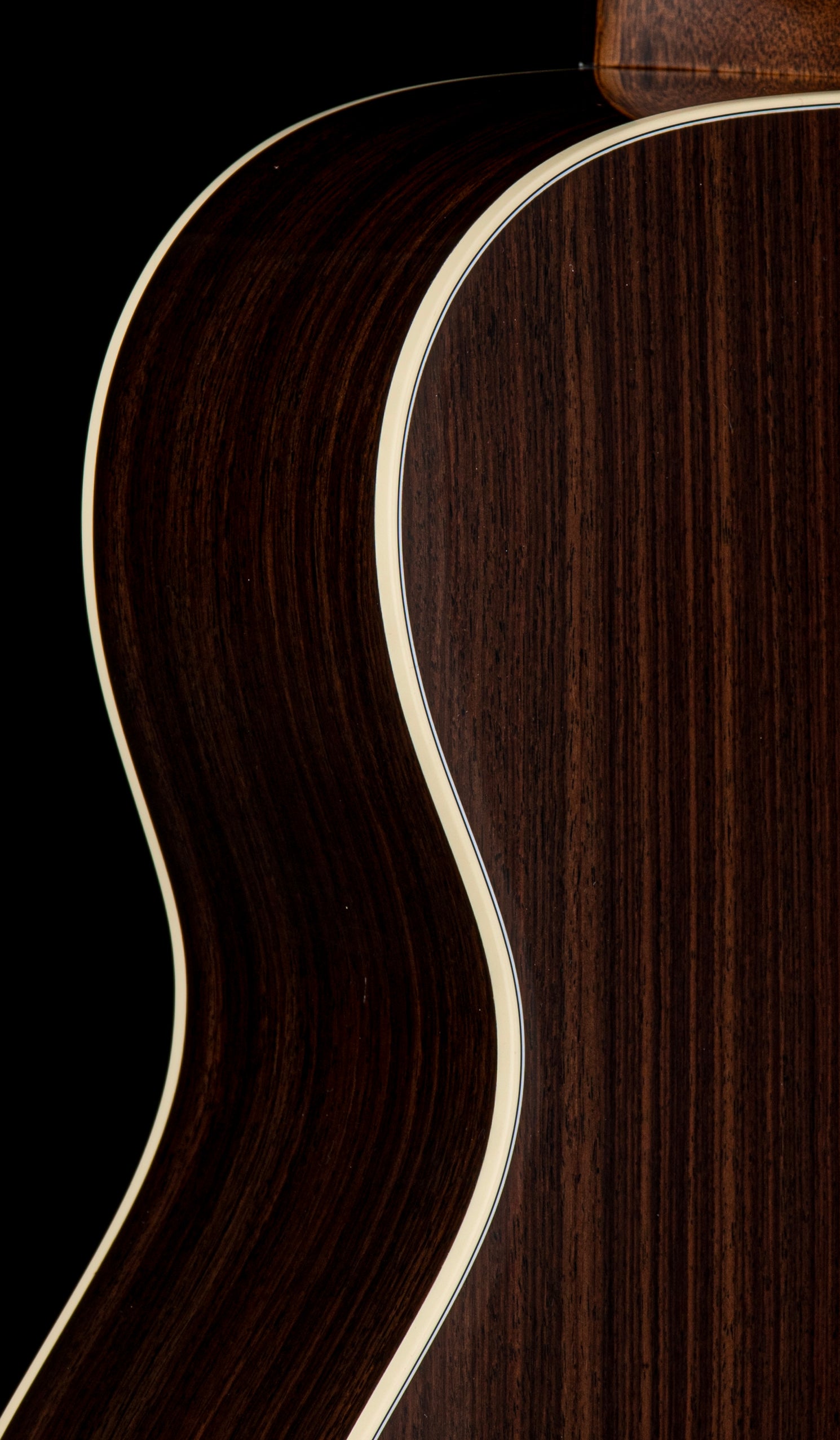 The 000-28 1937 also features proprietary Vintage Low Gloss process and is available in natural or vintage Ambertone burst finishes, along with your choice of Martin's signature low-gloss look or the lightly aged Stage 1 finish. Inspired by vintage guitars that were rarely played but carefully preserved, Stage 1 offers the look of age—light checking and subtle character—without the heavy wear found on more distressed models. It bears the marks of time, not the scars of the road.