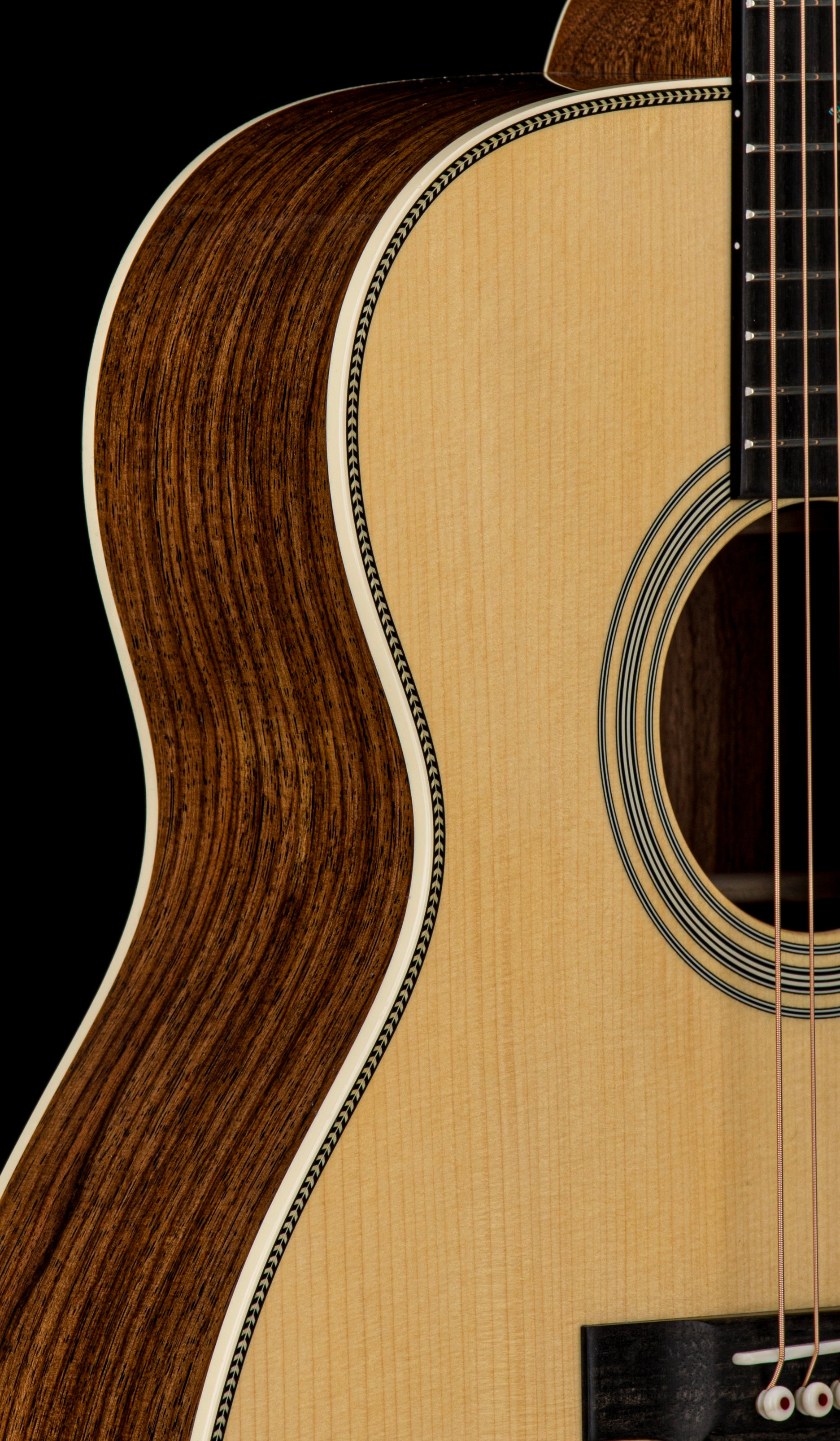 In an effort to provide the most responsive and powerful instrument, we upgraded the top to the Authentic Thickness–this creates an extremely dynamic playing experience and demands the finest Adirondack Spruce.