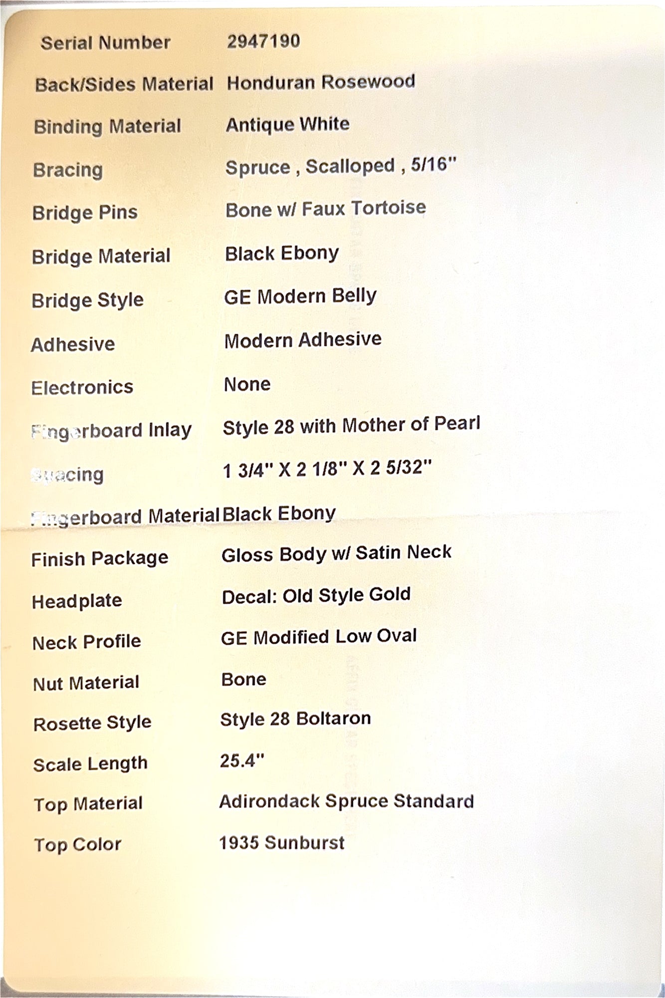 Martin Custom Shop D-28 Style Adirondack Spruce/Honduran Rosewood - 1935 Sunburst #47190 (Empire Music Spec)