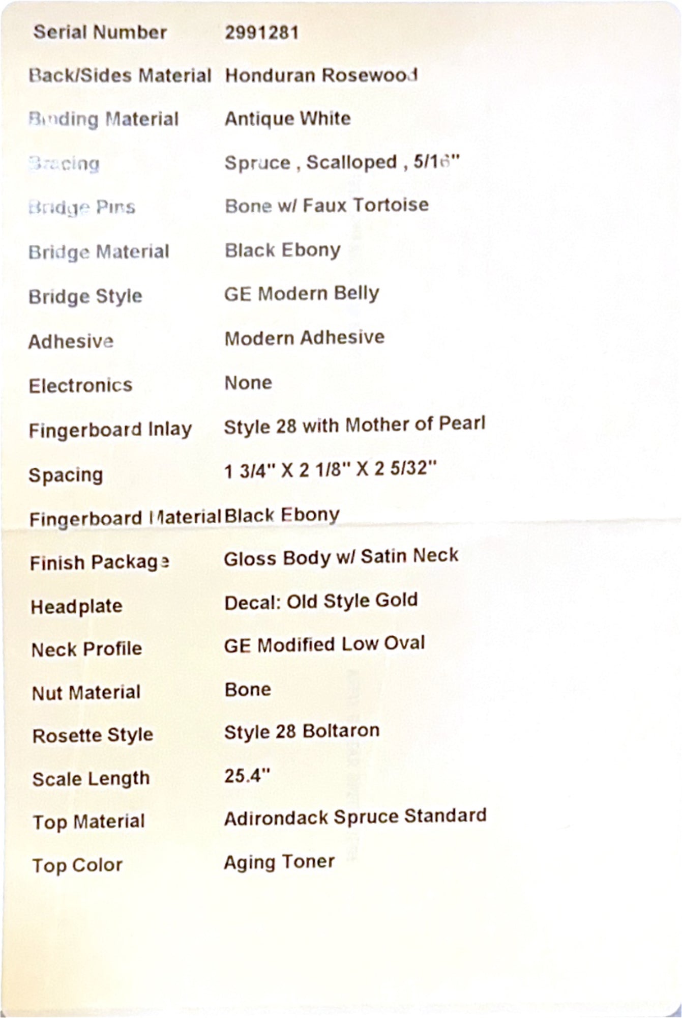 Martin Custom Shop D-28 Style Adirondack Spruce/Honduran Rosewood - Natural #91281 (Empire Music Spec)