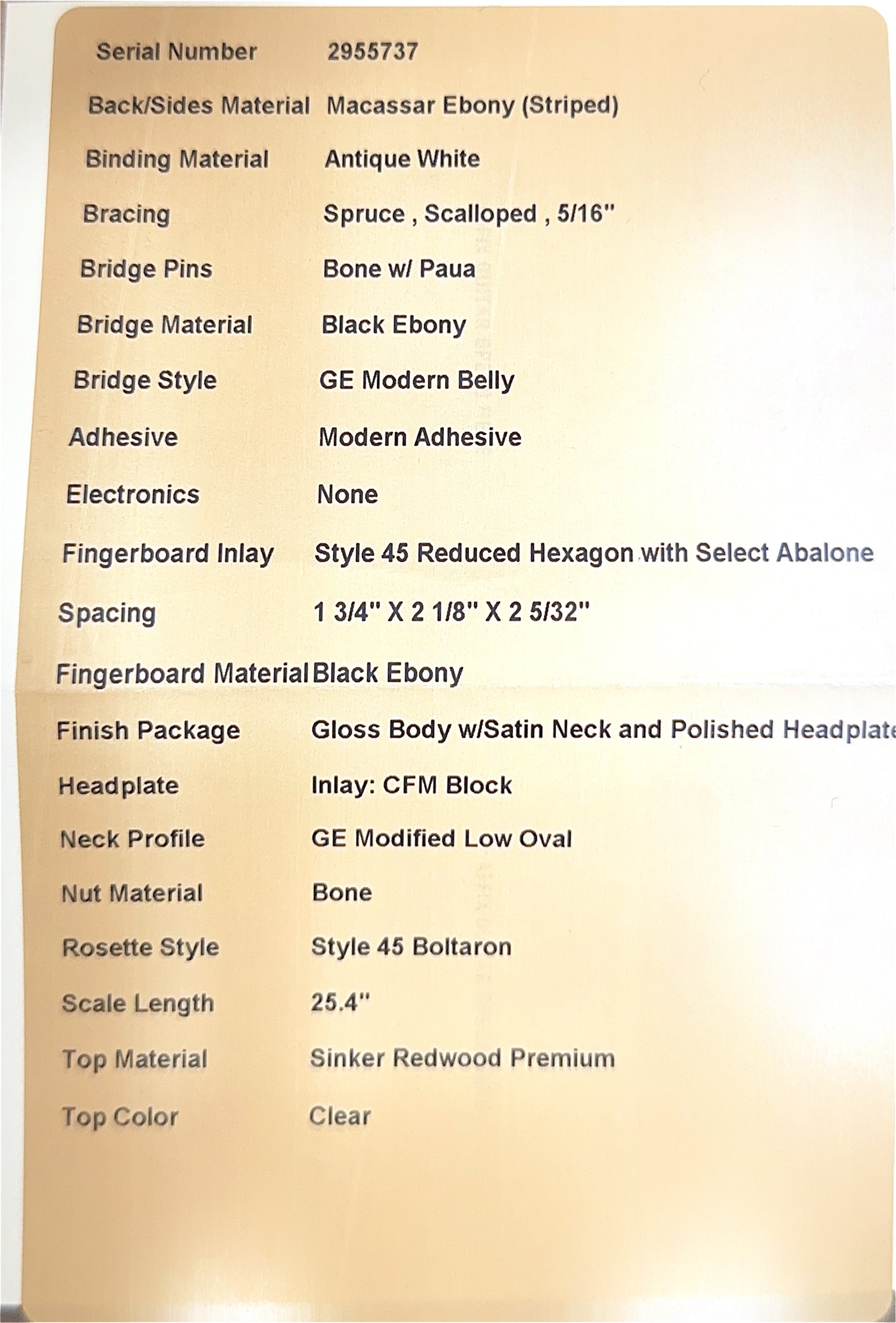 Martin Custom Shop D-41 Style Macassar Ebony/Sinker Redwood #55737 (Empire Music Spec)