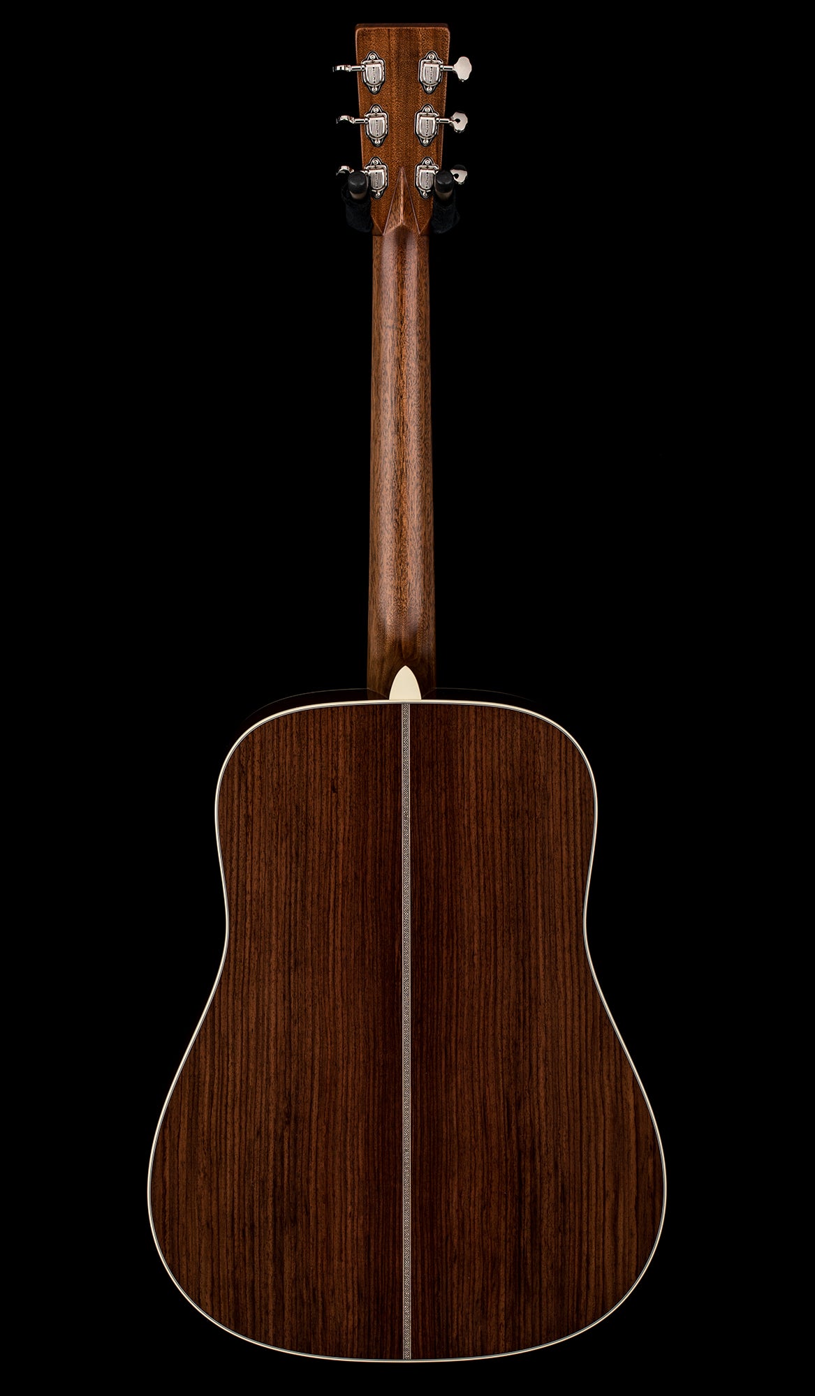 Inspired by Billy Strings' prized 1940 D-28, the Martin D-28 Billy Strings brings a modern twist to a classic pre-war design, incorporating features tailored to Billy's electrifying playing style. This signature Dreadnought showcases a unique 25" scale length, reducing string tension for fast, intricate playing and expressive bends – perfectly suited for Billy’s rapid-fire licks. With a custom nut width that’s slightly wider than his pre-war Martin and a modified low oval satin neck, it offers enhanced comfort and speed, ideal for players who crave agility up and down the neck. The solid East Indian rosewood back and sides and spruce top deliver a full, resonant tone with rich bass, while the bold herringbone trim, antique toner, and antique white binding add vintage flair. Nickel enclosed gear tuners, exclusive to Martin, and an ebony fingerboard with abalone diamond and square inlay round out the guitar’s looks and performance. It’s an ideal balance of traditional craftsmanship and modern playability, much like Billy’s genre-defying style. Each guitar features a custom paper label with his pre-printed signature and graphic.