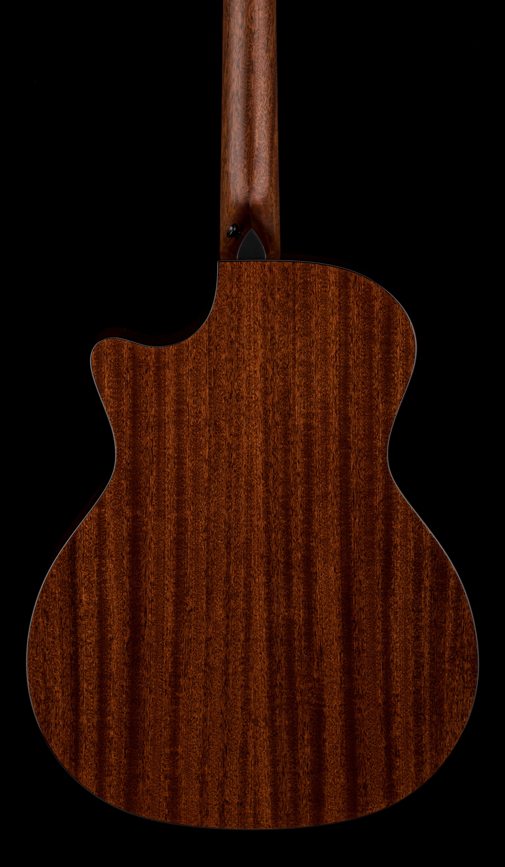 This Grand Auditorium boasts back and sides of solid sapele paired with a Sitka spruce top, producing a punchy, shimmering midrange with a warm, woody low-end character to balance its vibrant trebles. Scalloped V-Class bracing introduces a scalloped profile that unlocks a warmer low end and richer open-string resonance, while preserving the balance, pitch accuracy and projection that define V-Class.