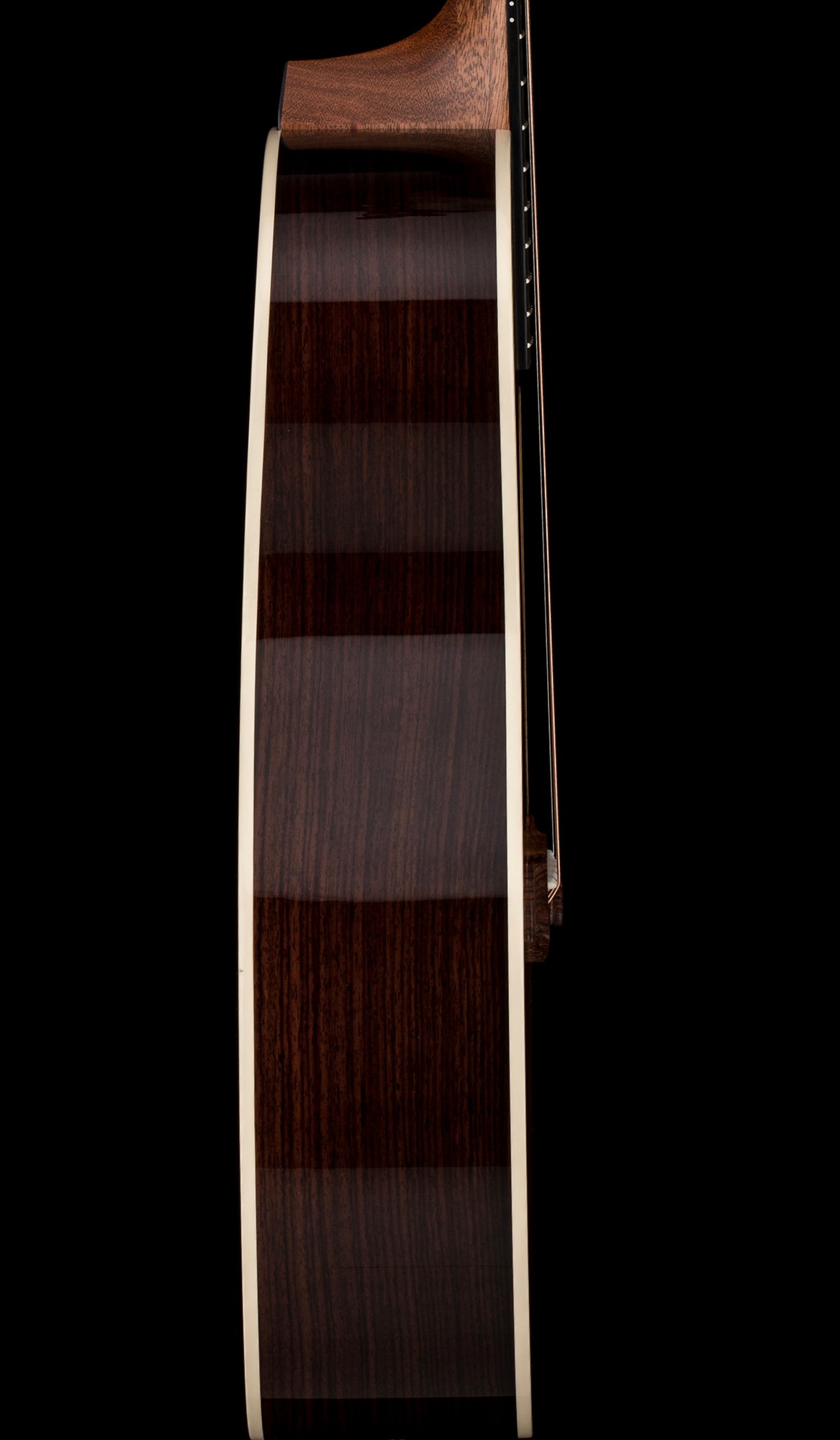 Fanned V-Class® Bracing: Featuring a fan-like arrangement of braces in the soundboard’s lower bout, this V-Class variant delivers on the original promise of Andy Powers’ innovative sonic engine: a flexible voicing platform capable of unlocking a bold new palette of sounds. In this case, it gives these Gold Label models a warmer, more resonant, more powerful sound.