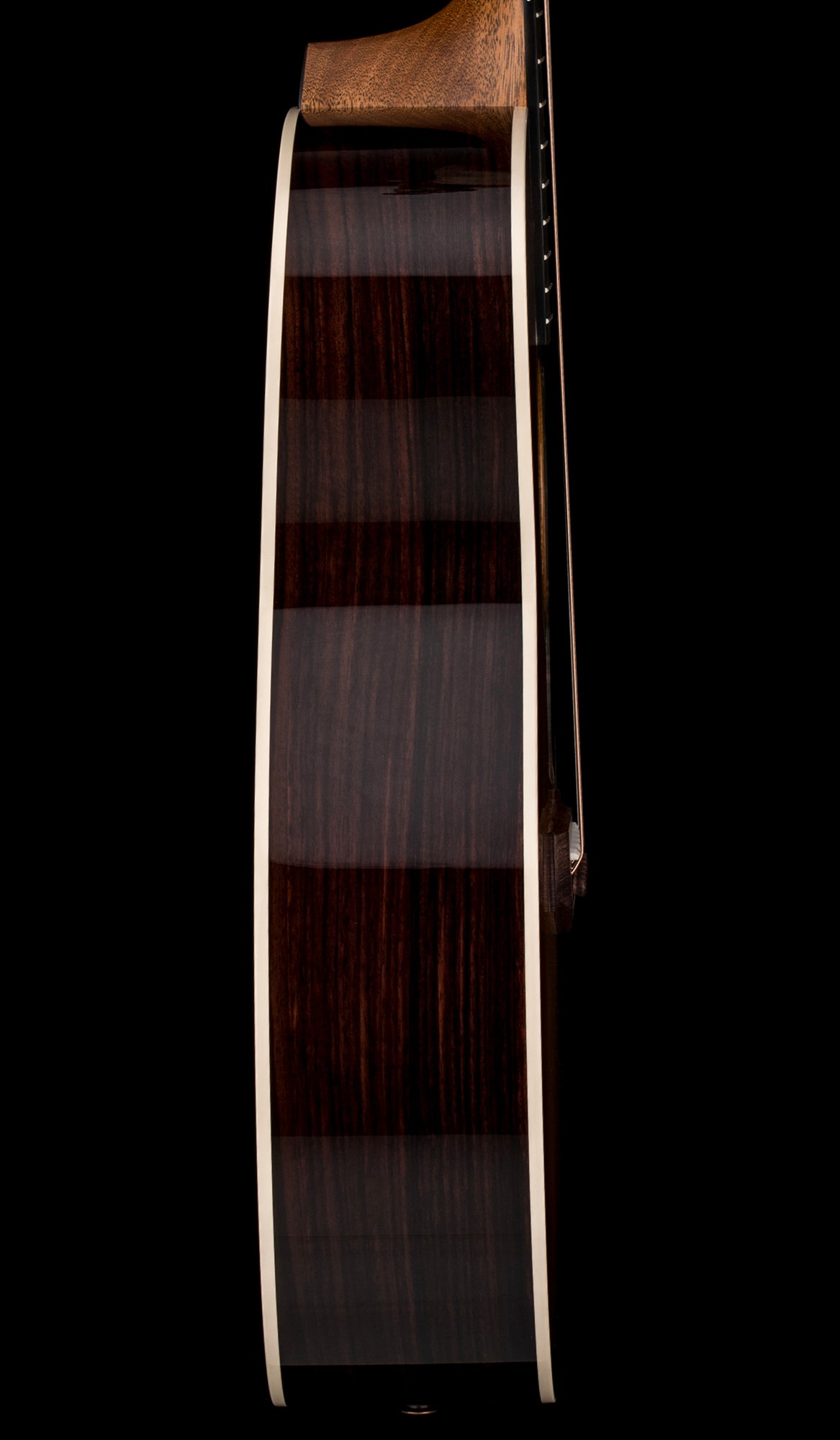 Fanned V-Class® Bracing: Featuring a fan-like arrangement of braces in the soundboard’s lower bout, this V-Class variant delivers on the original promise of Andy Powers’ innovative sonic engine: a flexible voicing platform capable of unlocking a bold new palette of sounds. In this case, it gives these Gold Label models a warmer, more resonant, more powerful sound.