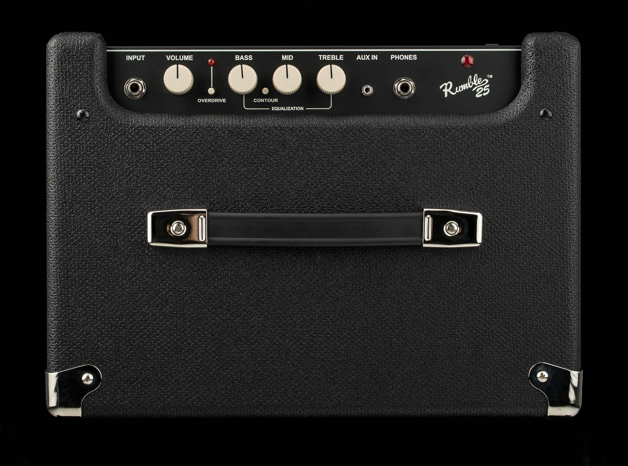 For bassists everywhere at all levels, Rumble bass combos are re-engineered to be astoundingly compact, portable and lightweight, with seismic Fender bass tone and stage-worthy features. The stylish Rumble 25 combo pumps 25 watts of pure Fender bass tone. Small but loud, it's built with great features including classic Fender styling, 8" speaker, overdrive circuit, mid-scoop contour switch and more. A great practice, at-home and coffeehouse-gig combo for any bassist.