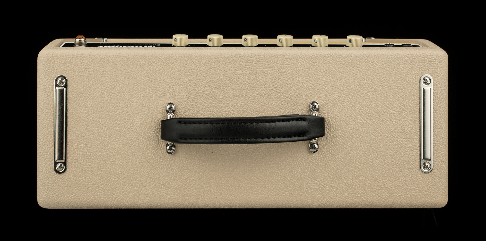 The front end is similar to the Half Pint, with extended headroom, lush spring reverb, and deep output modulating tremolo. The amplifier is hand wired onto a turret board with bespoke Soursound transformers and Jupiter capacitors standard.