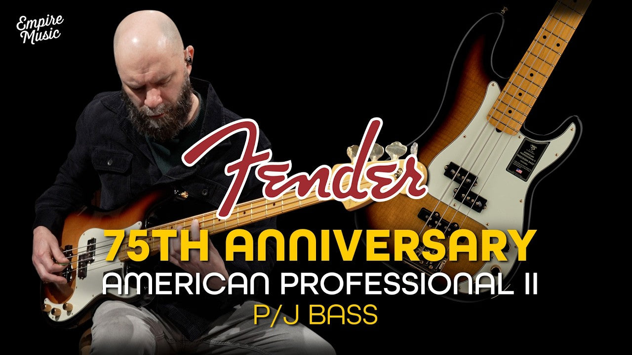 Celebrate 75 years of bass innovation with the 75th Anniversary American Professional PJ Bass. Crafted with a resonant alder body topped with a stunning flame maple top and finished in a classic 2-tone sunburst, this instrument radiates premium elegance. The Modern "C" shaped maple neck with 9.5" radius maple fingerboard and medium jumbo frets provide the smooth, fast playability that today's players demand. The 75th Anniversary Precision Bass® and Jazz Bass® pickups deliver the best of both worlds - that foundational P-Bass thump combined with the articulate growl and versatility of a J-Bass bridge pickup. Other premium appointments include gold-plated hardware throughout, a vintage HiMass™ bridge and tapered-shaft tuning machines. This limited-edition model represents the evolution of the Precision Bass legacy, a must-have for collectors and bass enthusiasts seeking modern performance.
