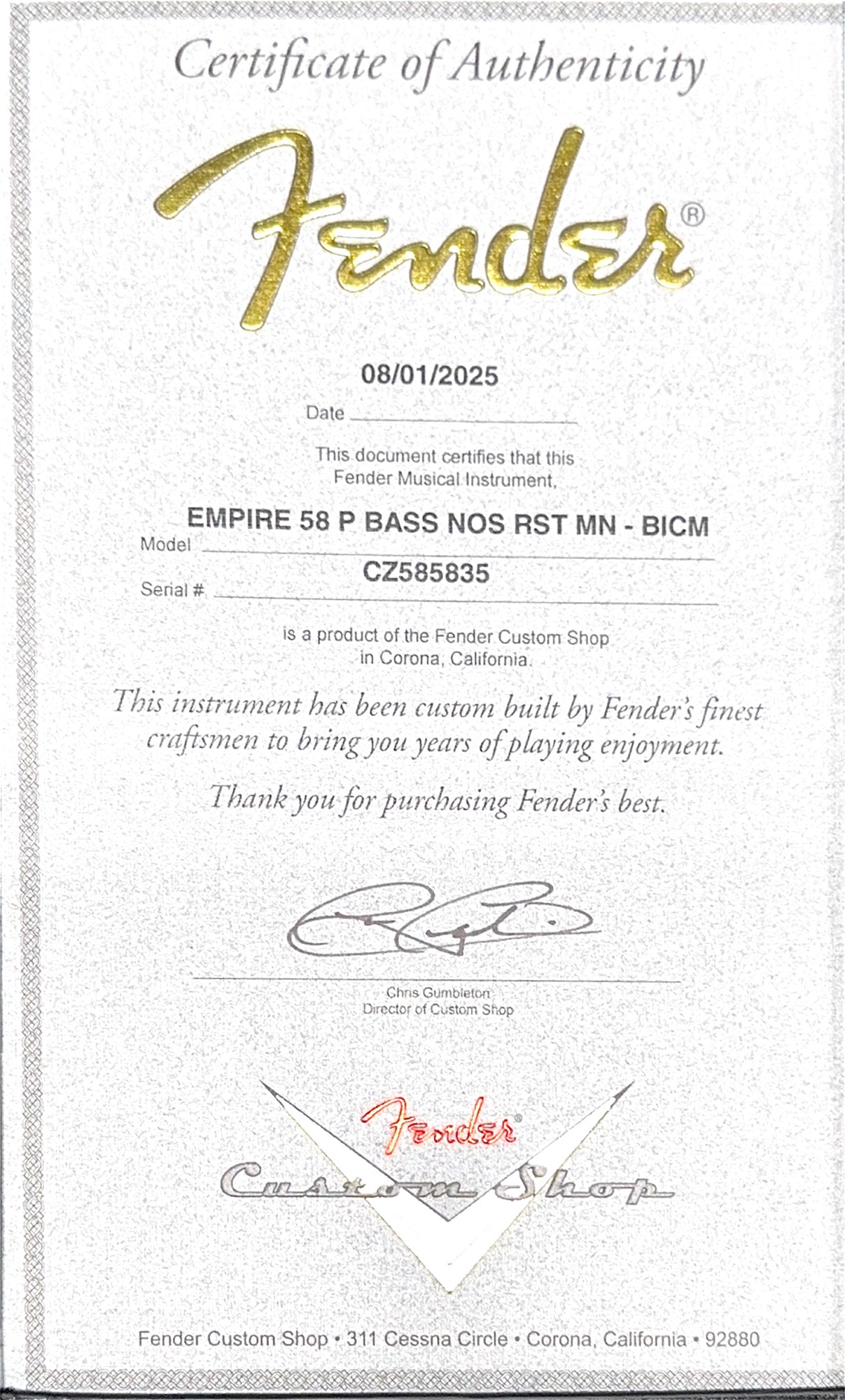 The Fender Custom Shop Empire 58 Precision Bass was designed in-house by our resident bassist and Director of Sales, Anthony Pecora. Based off of his very own 58 Custom Shop P with a few nods to the 60’s models, this bass takes the best from both eras into a player-centric package.