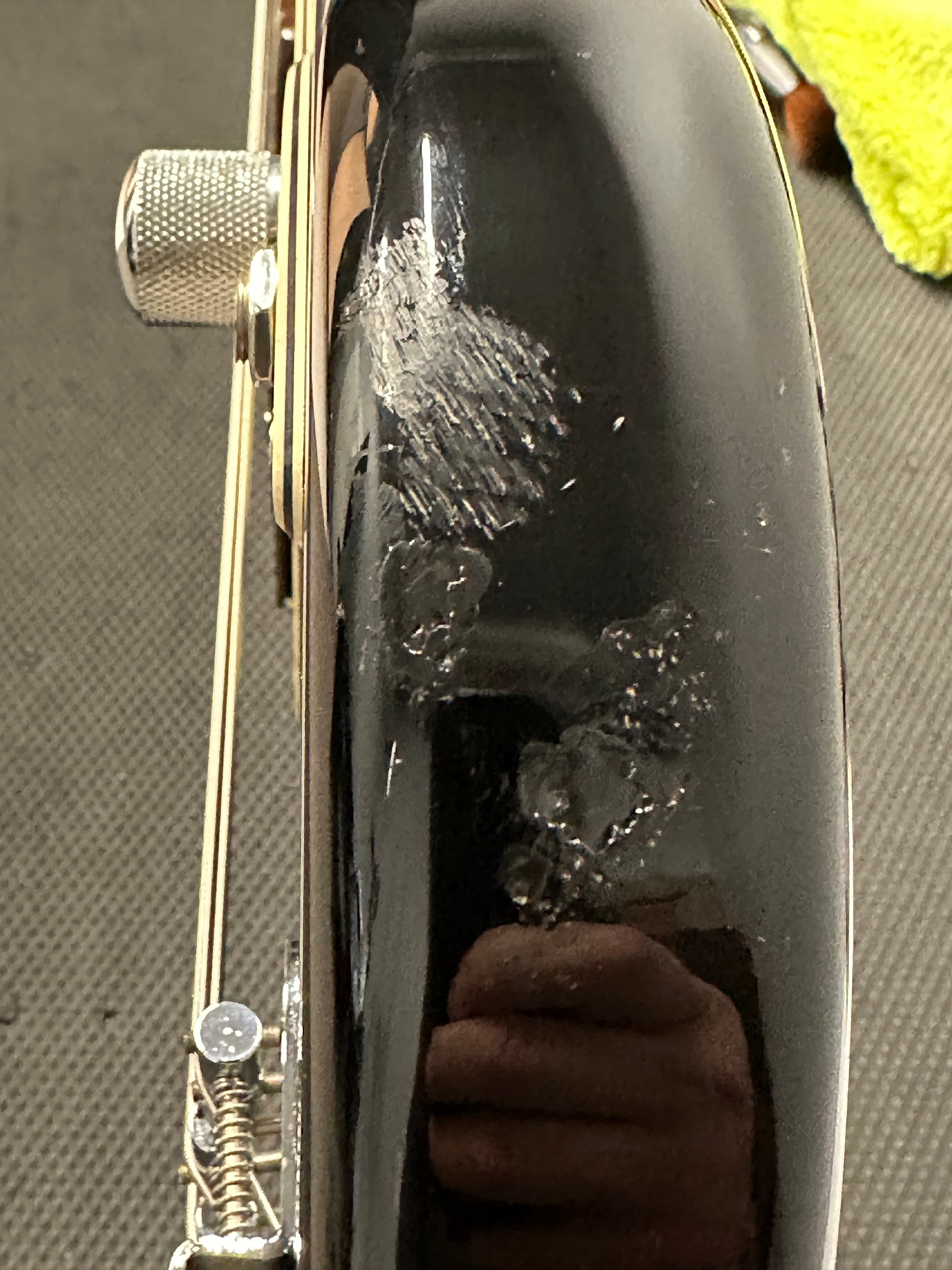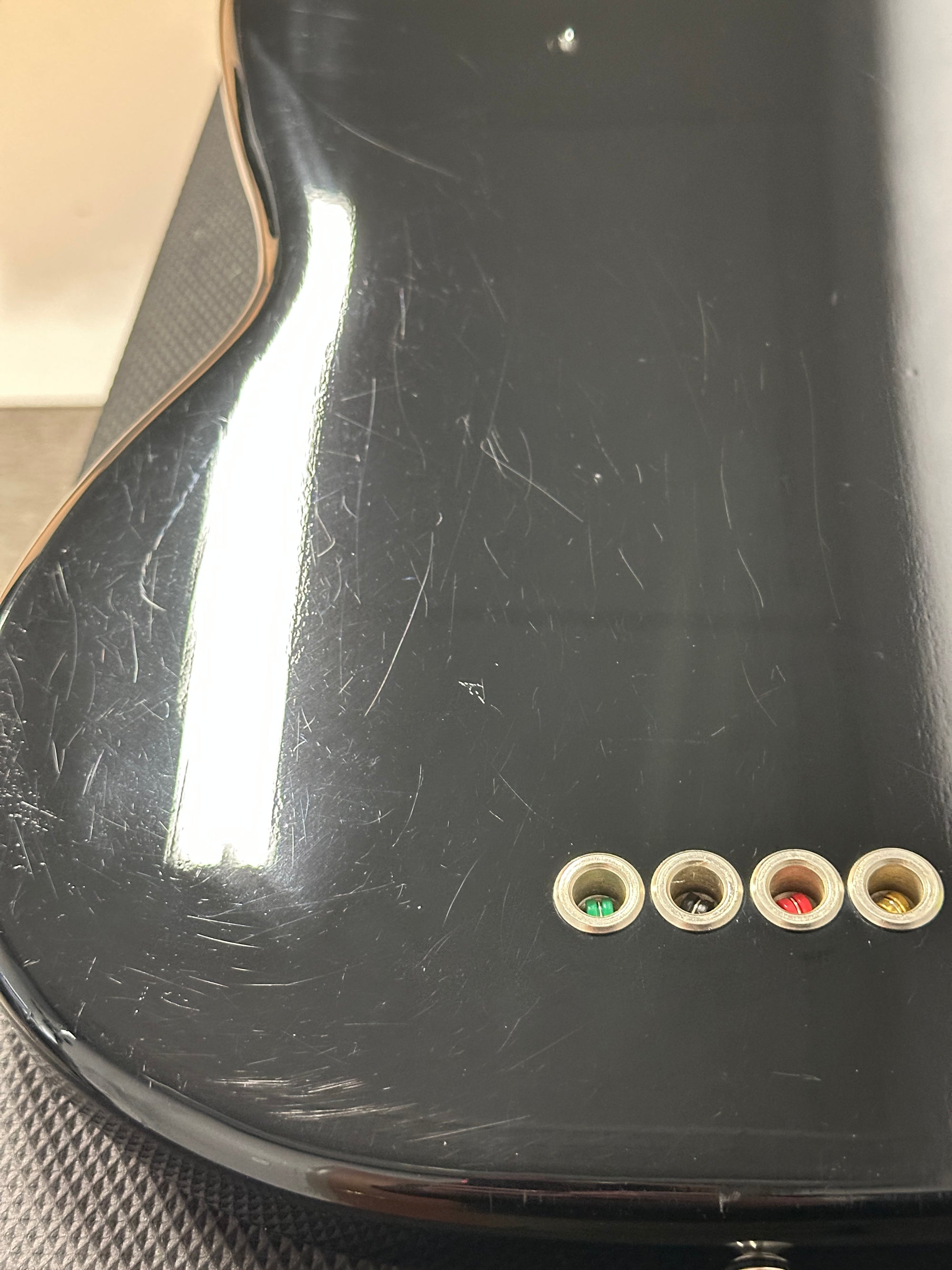 Note: After close inspection, this instrument has scratching, scuffs, chips, impressions, impacts, finish wear, and playwear throughout. Frets have moderate wear. (See pics, light reflections used to show wear)