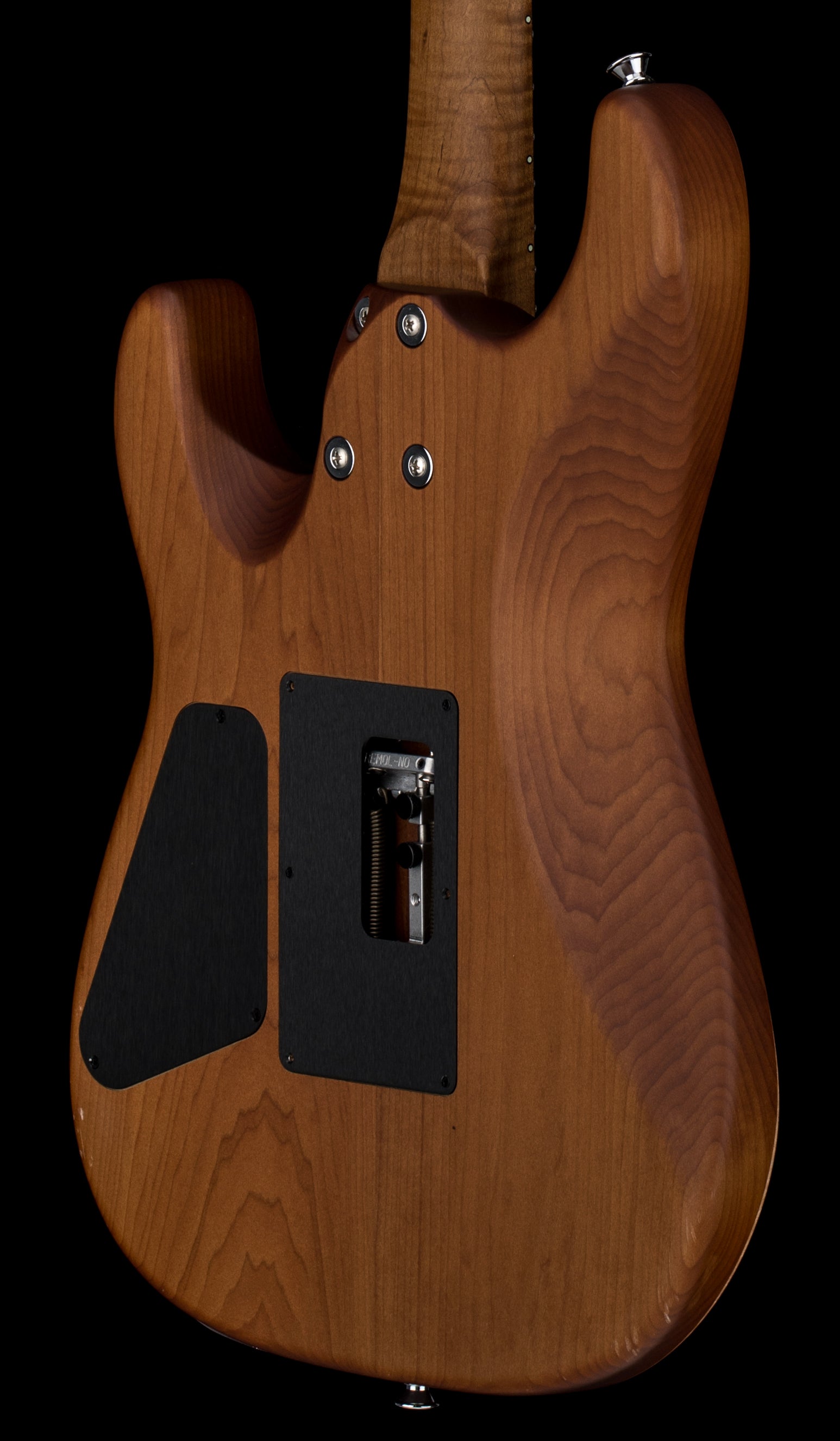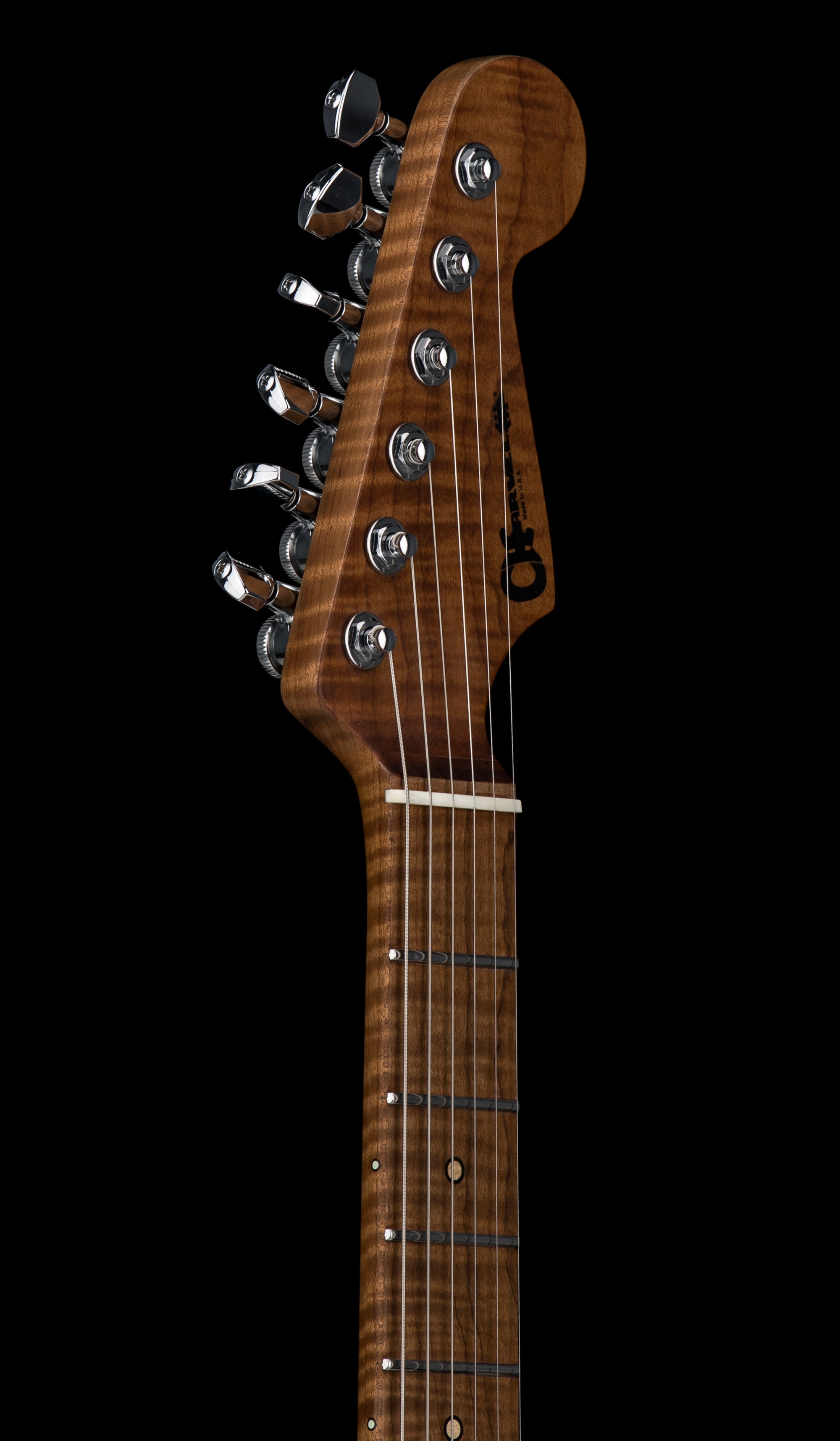 Other premium features include three specially wound Charvel custom MF pickups arranged in a versatile HSH configuration with five-way switching for the expansive tonal openness and dynamic sensitivity that Govan demands, a two-way mini toggle switch to engage single coil simulation in bridge and neck humbucker position, two Luminlay numbered dome control knobs (volume, tone) with a brass pin locator, U.S.-made recessed Charvel locking tremolo bridge with Tremol-No™ unit and oversized brass block, bone nut and chrome hardware.