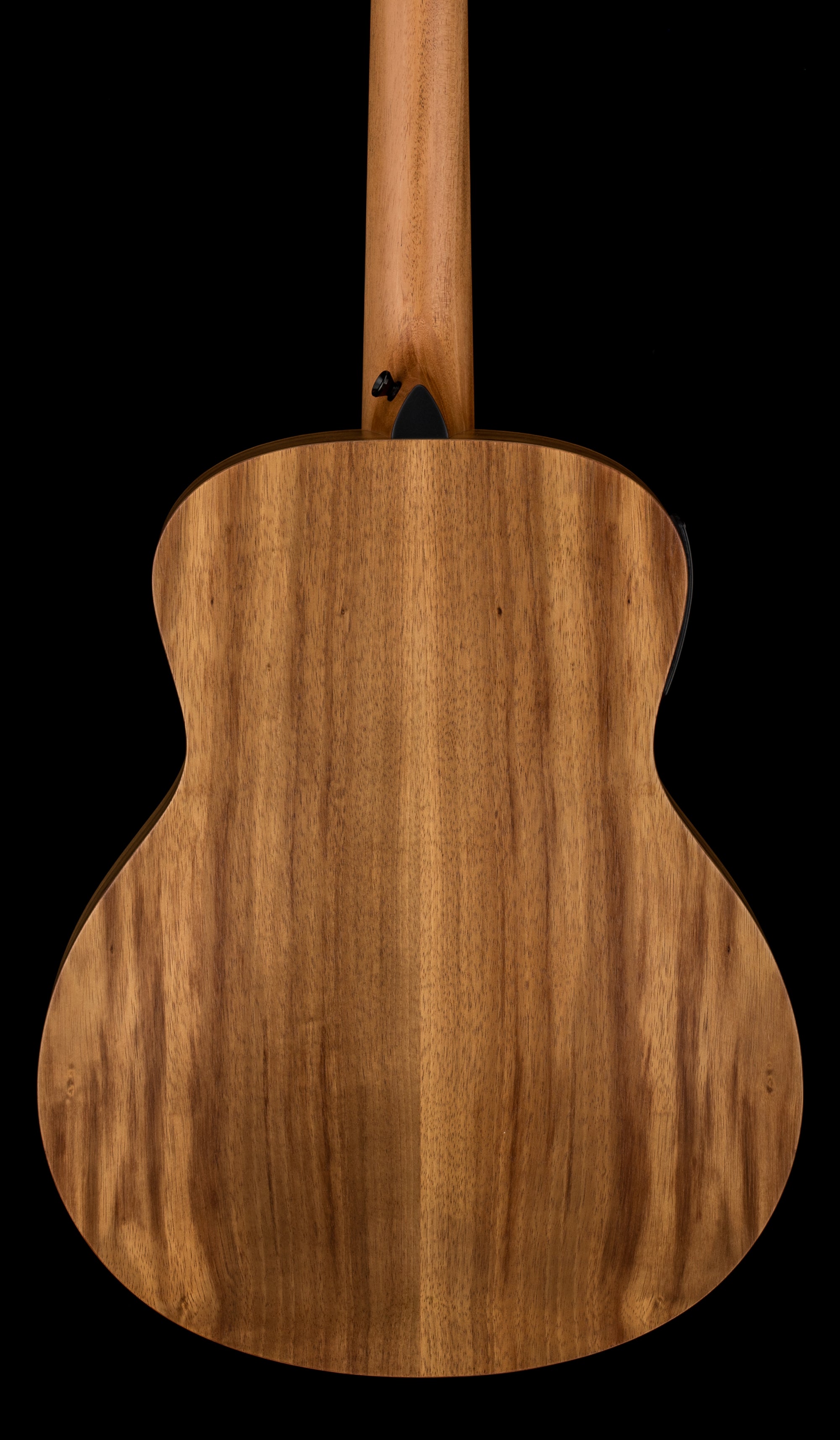 The GS Mini-e Koa brings the vibrant sound and organic beauty of Hawaiian koa to Taylor's ultra-popular reduced-scale acoustic guitar. The GS Mini's compact proportions make it a great choice for players who take their music on the road, and with a solid koa top, this model serves up a rich, bold sound that punches well above its weight for a smaller guitar. The built-in ES-B pickup offers clear, natural amplified tone and includes a digital tuner with an easy-to-read LED display. The GS Mini-e Koa ships with a structured gig bag.