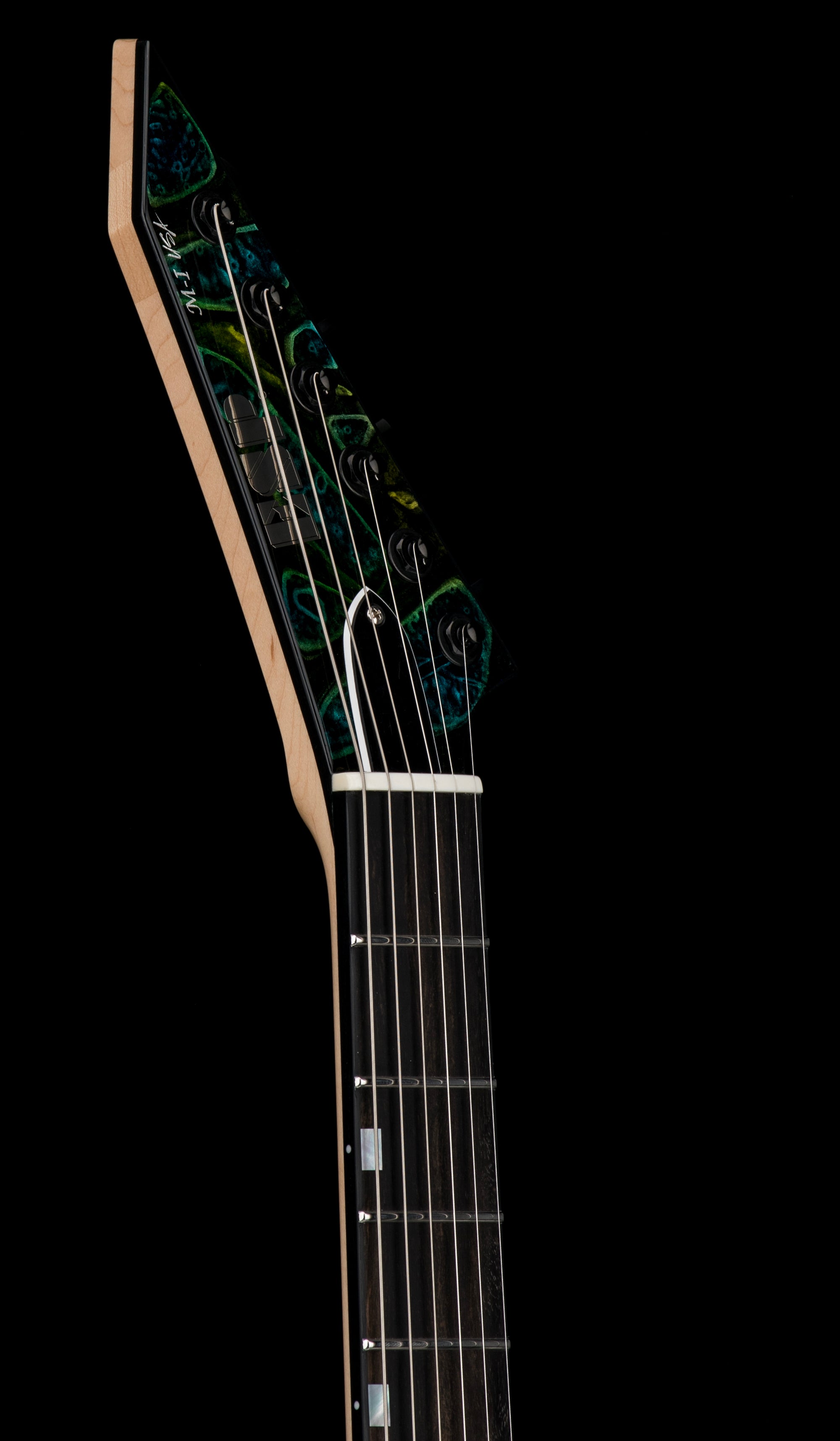 With the M-I NTB NT USA, you get a flat-top, streamlined guitar that’s handcrafted in Southern California by the expert luthiers at the ESP USA facility. The “NTB” stands for its neck-thru-body construction at 25.5” scale, providing the stability and sustain you’ve always dreamed of. The “NT” is for non-trem, referring to its recessed TonePros locking TOM bridge with string-thru-body design for excellent sustain and resonance. Other features include a reverse headstock (allowing for ideal string tension in the lower registers), an ebony fingerboard with deluxe mother-of-pearl offset block inlays, and 24 extra-jumbo Jescar stainless steel frets.