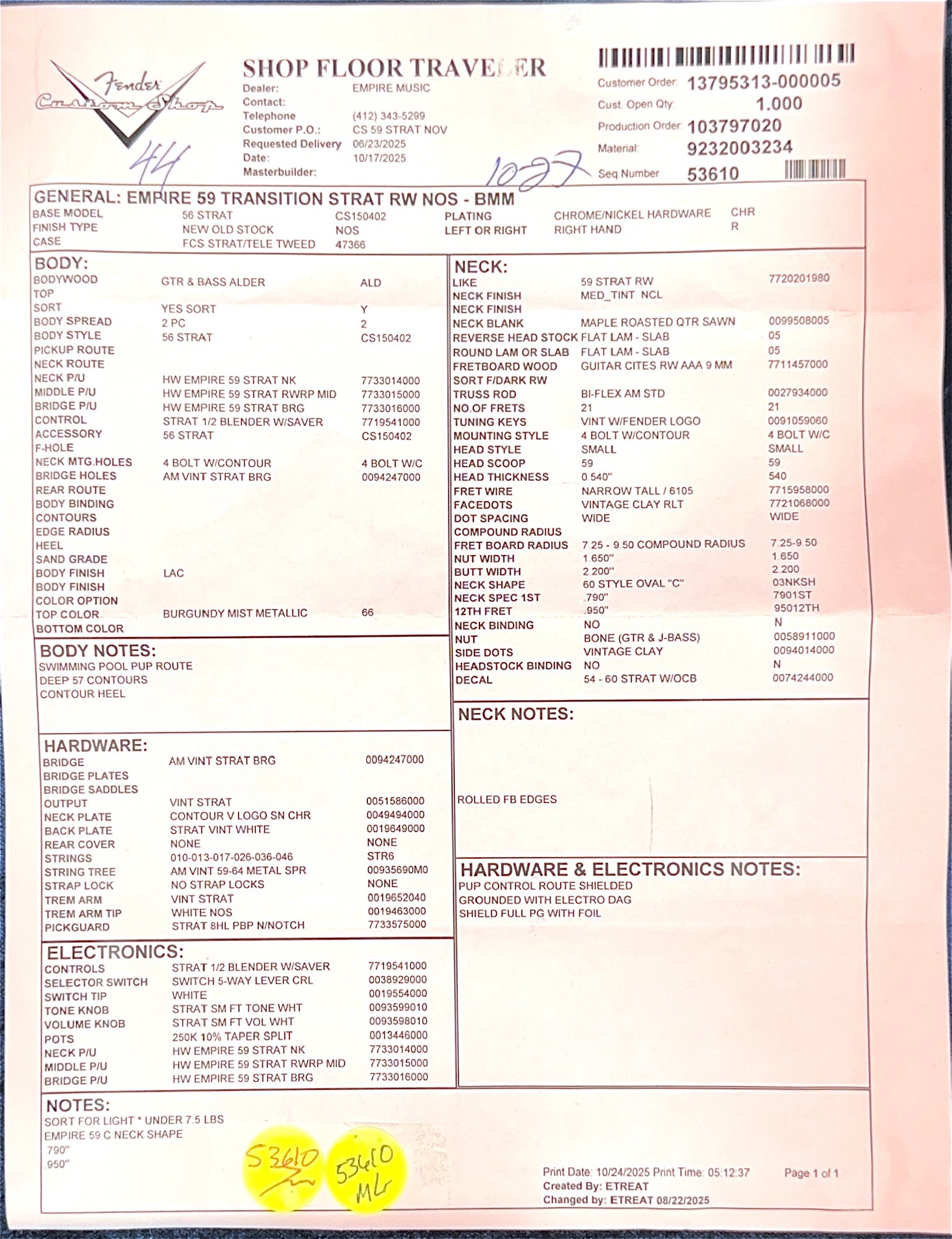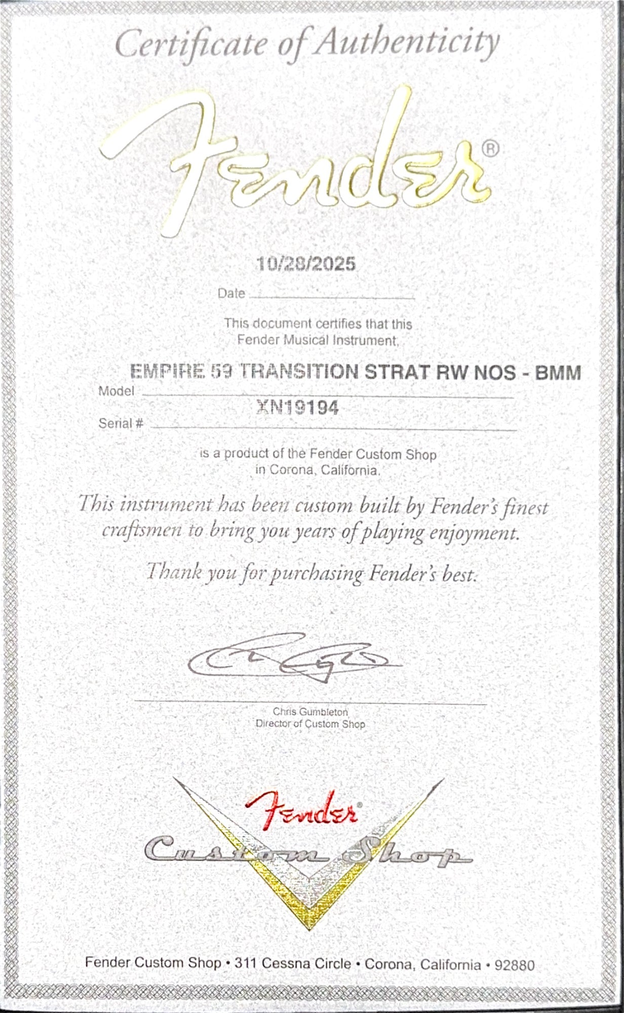 “For over 25 years, the Strat has been my go-to. The look, sound, and versatility of the Stratocaster, and the iconic heroes who play them, has been at the foundation of my experience as a musician. The Empire ‘59 Transition Strat draws on everything I love about the most expressive guitars ever made. Players will appreciate the familiar played-in neck and body feel, and the maturity and sweetness of our hand wound ‘59 pickups. These Strats are among the best I’ve played, and are a tribute to the deep connection between the Fender Stratocaster and the musicians who play them” - Justin, Empire Music
