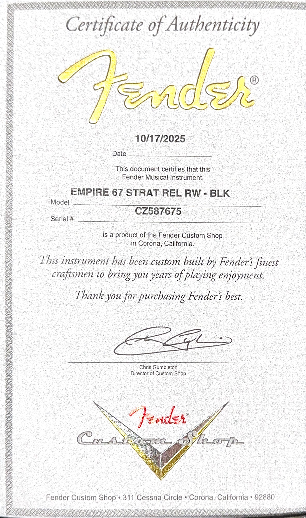 The Empire ‘67 Stratocaster is one of the most sought after and best-selling Fender Custom Shop models in the world. Designed by Empire’s own guitar experts and built by the master craftsmen at Fender Custom Shop, the Empire Music Exclusive ‘67 Stratocaster guitars have become a true classic.