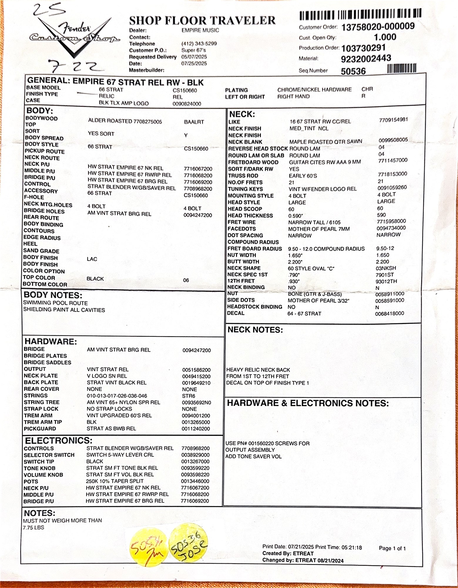 Our Custom Shop Authorized technicians complete a full professional factory-spec setup and inspection before shipping or in-store pickup, ensuring an extraordinary playing experience!
