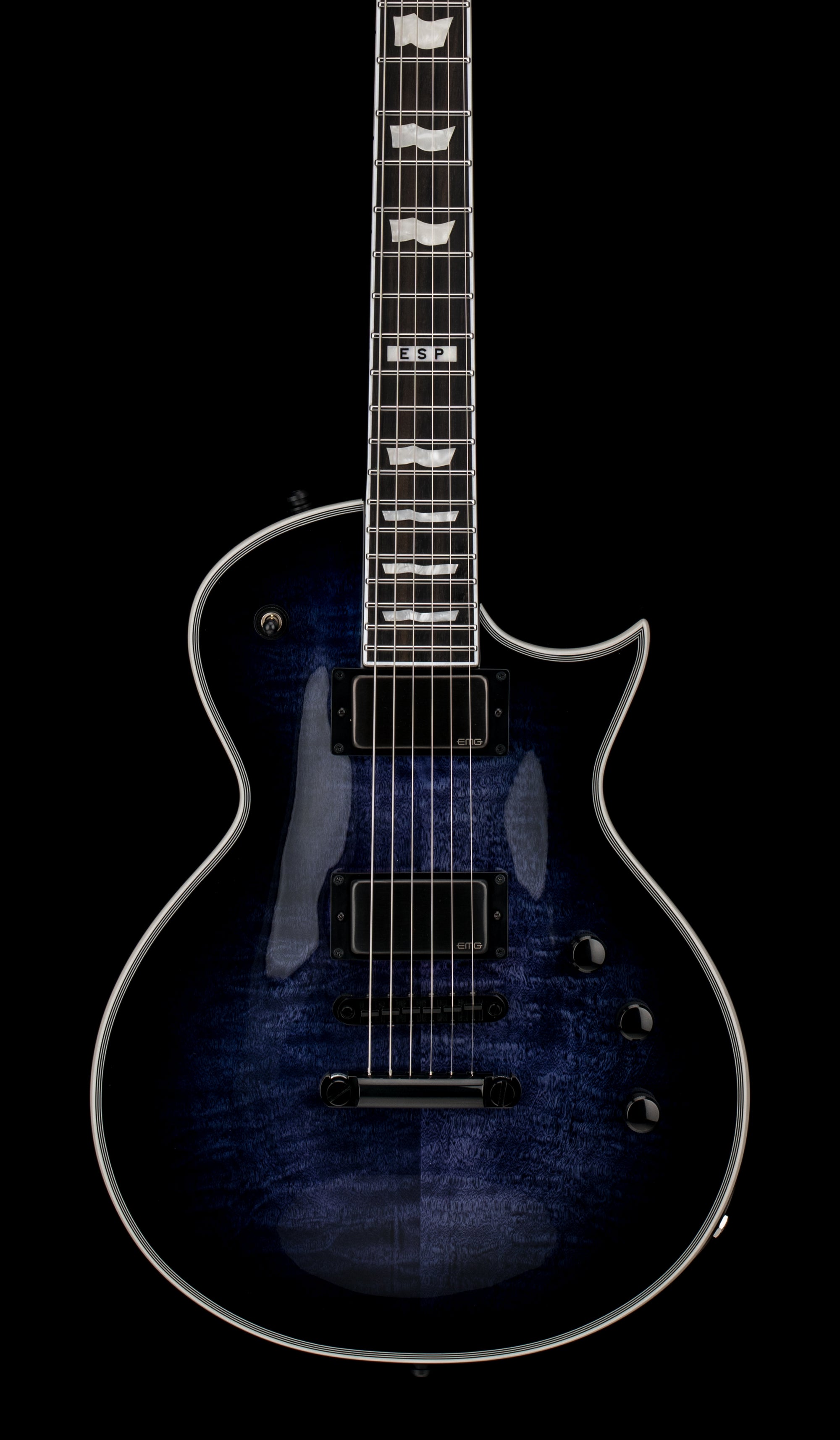 It’s back! While you won’t find many purpleish/blue reindeer in the wild, this E-II Eclipse brings back an exclusive ESP favorite finish in Reindeer Blue over a quilted maple top with multi-ply binding. Like all E-II models, this guitar is created at our ESP factory in Tokyo, Japan, and is designed for professional players who accept no compromise in tone, feel, or reliability for their guitars and basses. The E-II Eclipse RDB also includes an ebony fingerboard, 22 extra-jumbo stainless steel frets, ESP flag inlays, a satin finish on the back for super smooth playability, a bone nut, Gotoh locking tuners, a Gotoh TOM bridge and tailpiece, and ESP strap locks. We’re also updated this outstanding guitar with a set of EMG 60 and EMG 81 pickups in Brushed Black Chrome. Includes an ESP hardshell form-fitting case.