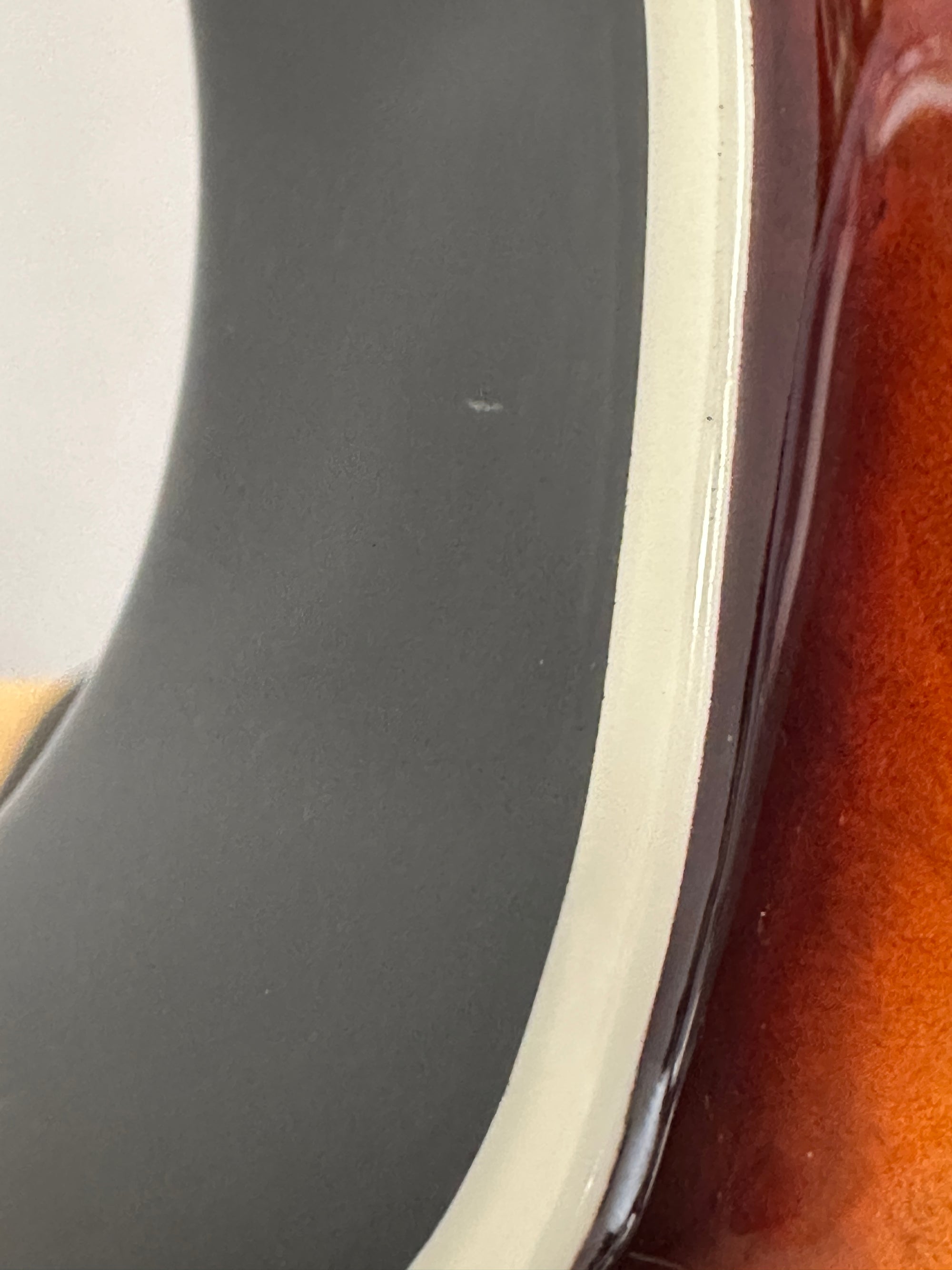 Note: After close inspection, this instrument has a finish blemish/scuff near the horn cutout. (See pics)