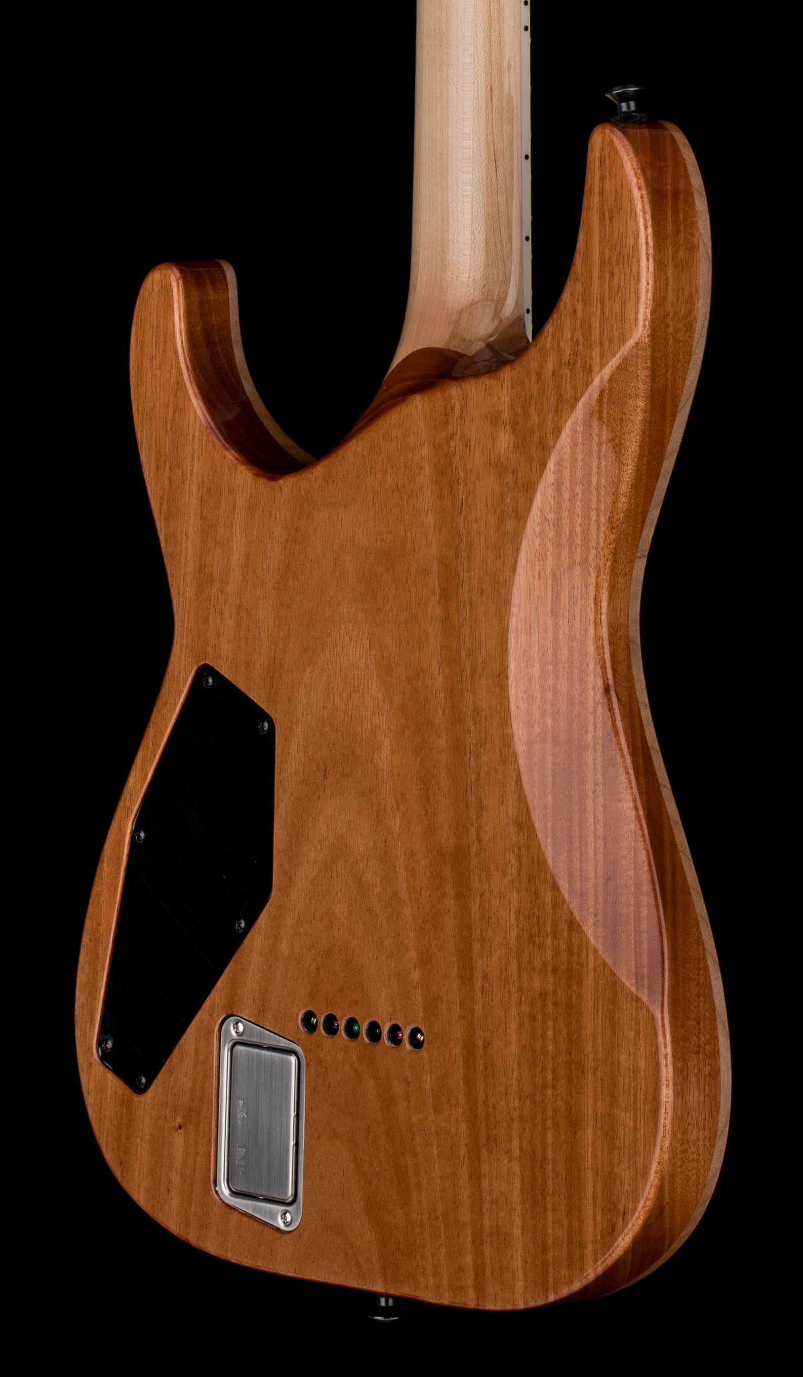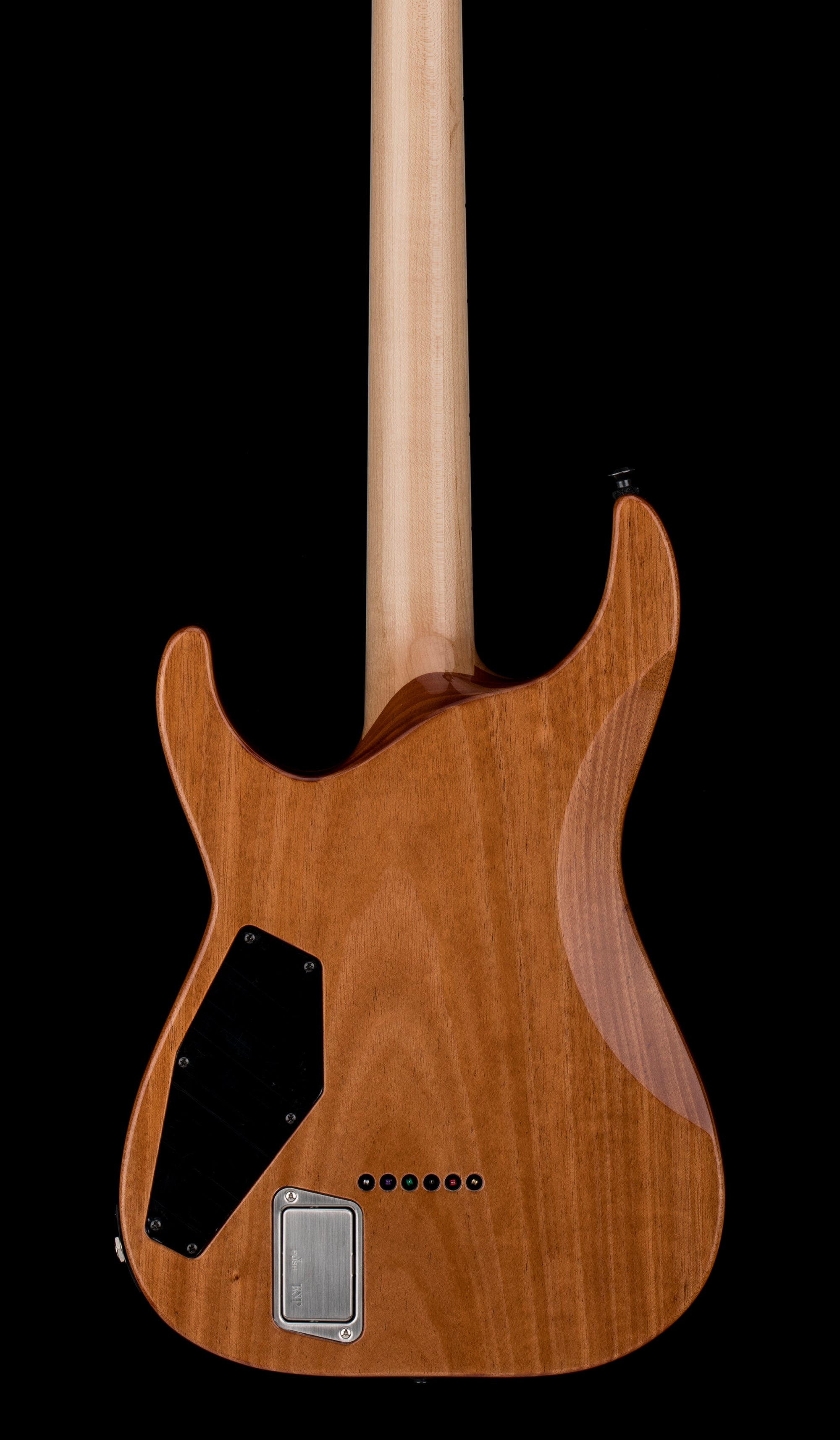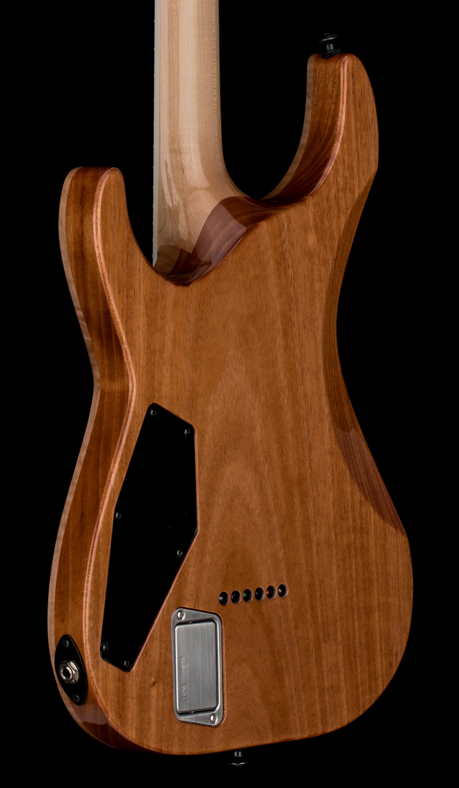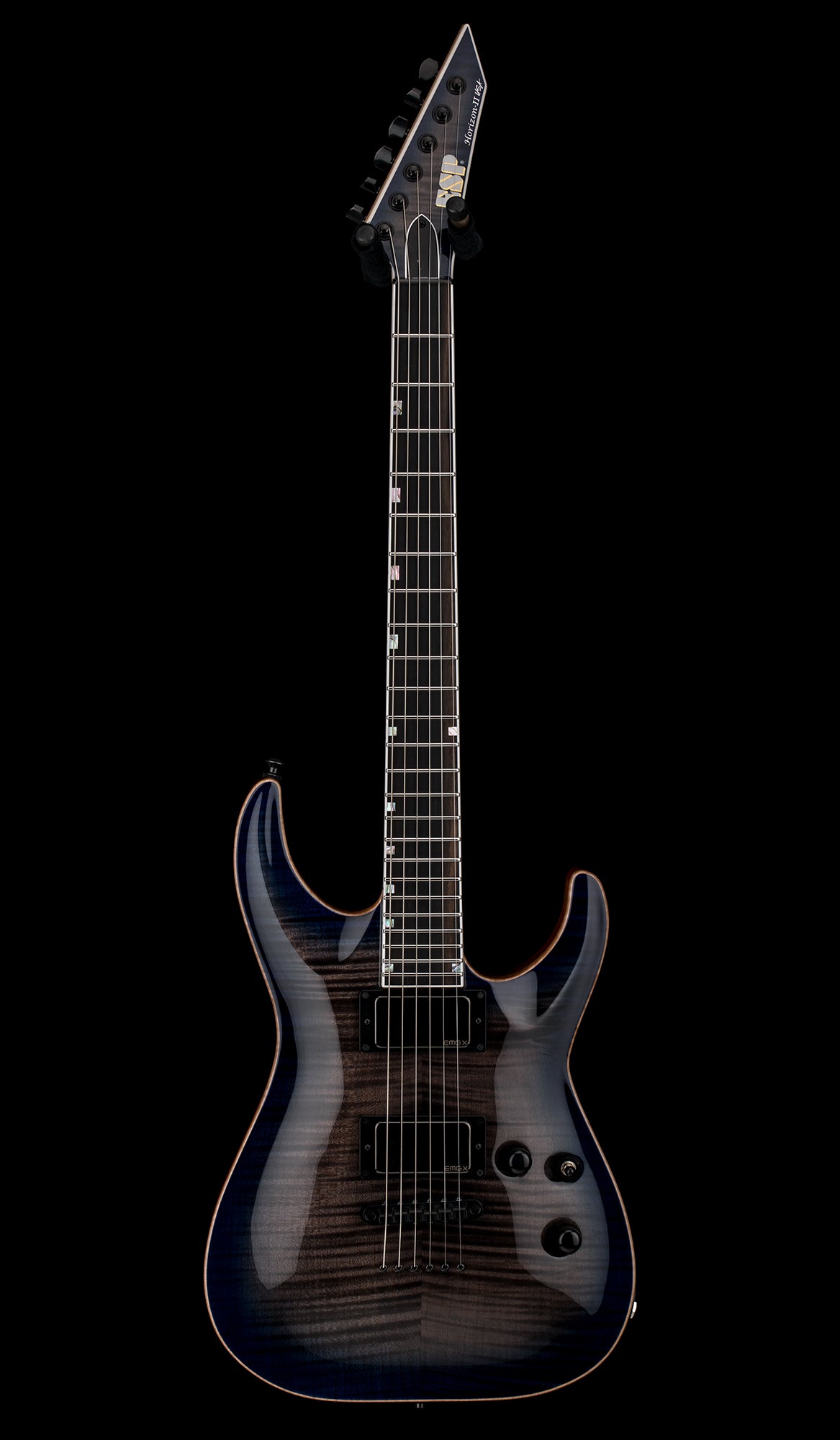 One of ESP’s most beautiful guitar shapes, the elegant archtop design of the Horizon-II USA will turn heads, but make no mistake: this guitar is ready for your most brutal riffs and speedy, fluid lead lines. Crafted by our acclaimed luthiers in Southern California, the Horizon-II USA is a premium quality guitar designed for serious players. Built at 25.5” scale with set-thru construction for smooth access to the highest frets at 25.5” scale, it pairs a carved-topped mahogany body with a three-piece, thin u-shaped maple neck. Other design features include an ebony fingerboard with 24 extra-jumbo Jescar stainless steel frets and abalone offset block inlays.