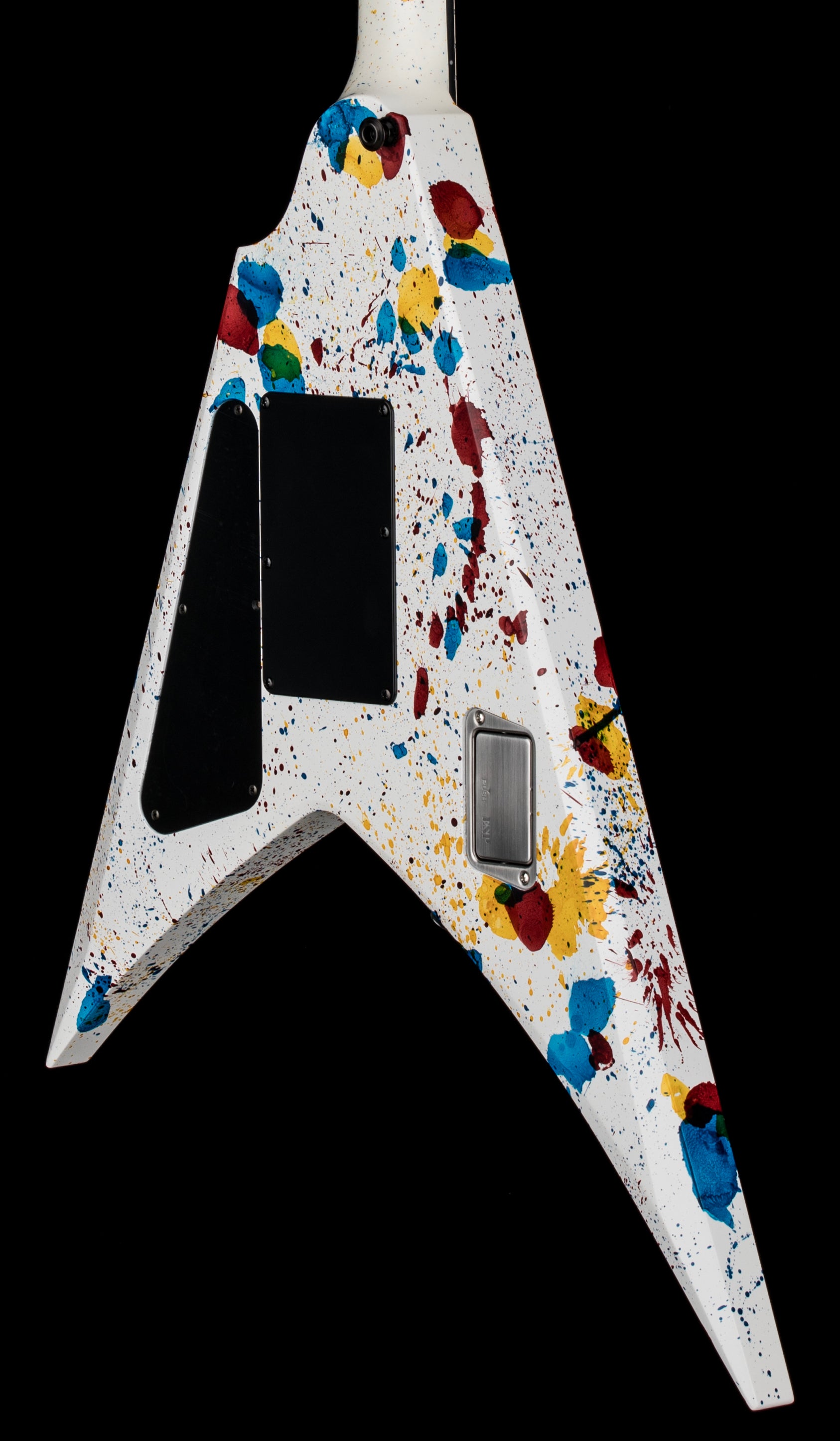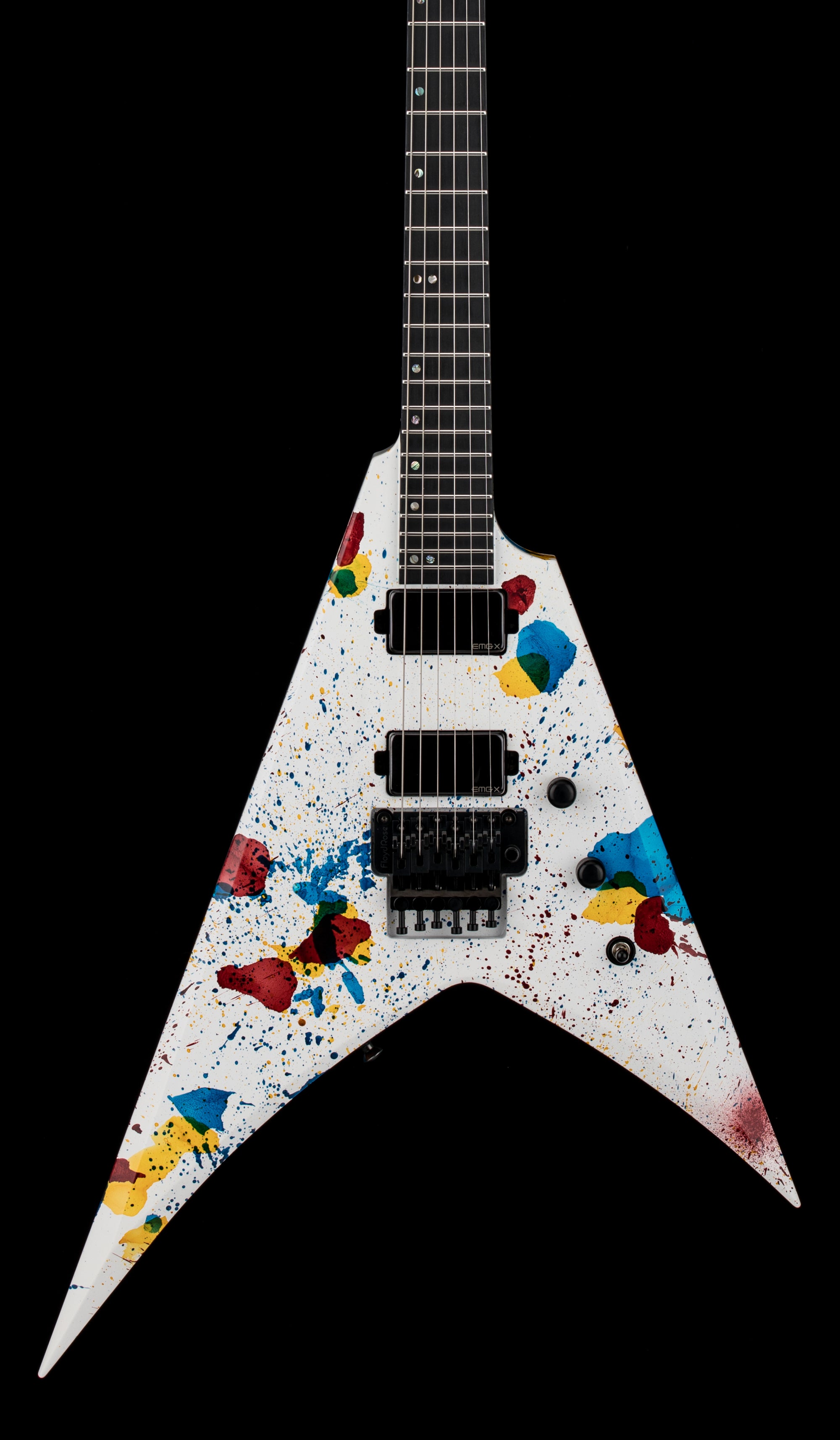 This guitar takes the aggressive offset V shape to an entire new level of quality and playability. Built with neck-thru-body construction for the ultimate in stability and sustain, it offers an extra-thin U-shaped three-piece maple neck with mahogany body wings. The V-II FR USA includes an ebony fingerboard with offset abalone dot inlays and 24 extra-jumbo stainless steel frets. Its top-tier components include a Floyd Rose Original double-locking tremolo, Gotoh Magnum Lock tuners, and Dunlop Straplok buttons. ESP offers the V-II FR USA in a variety of exciting solid-color finishes, pickups, and hardware so you can personalize this guitar to meet your own aesthetic.