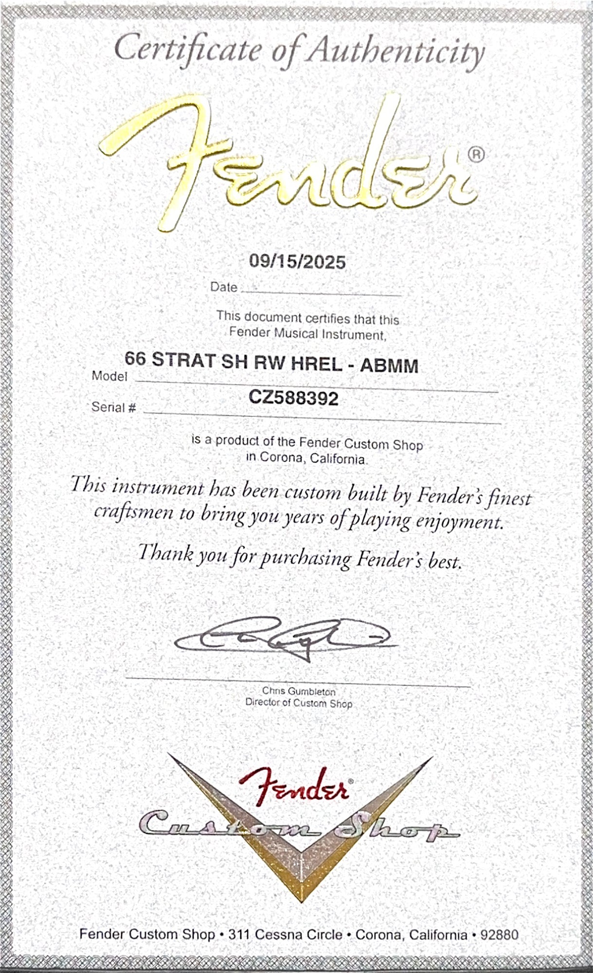 Stand out from the crowd with the 1966 Stratocaster® SH Heavy Relic® from the Fender Custom Shop. This stunning electric guitar features a 2-piece select ash body with offset seam complete with realistic heavy relicing that lends vintage mojo and road-worn appeal. The quartersawn maple neck has a 1966 Oval "C"-shaped profile and is topped with a smooth 3A rosewood fingerboard outfitted with 21 Jescar Vintage frets for supreme playability.