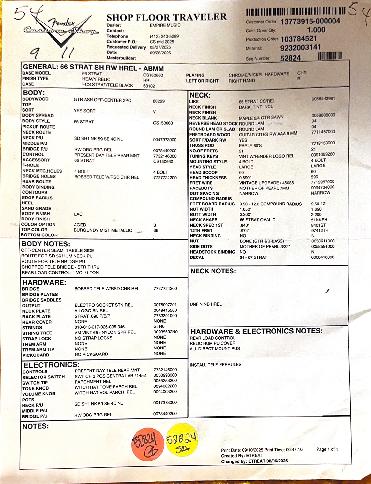 Our Custom Shop Authorized technicians complete a full professional factory-spec setup and inspection before shipping or in-store pickup, ensuring an extraordinary playing experience!