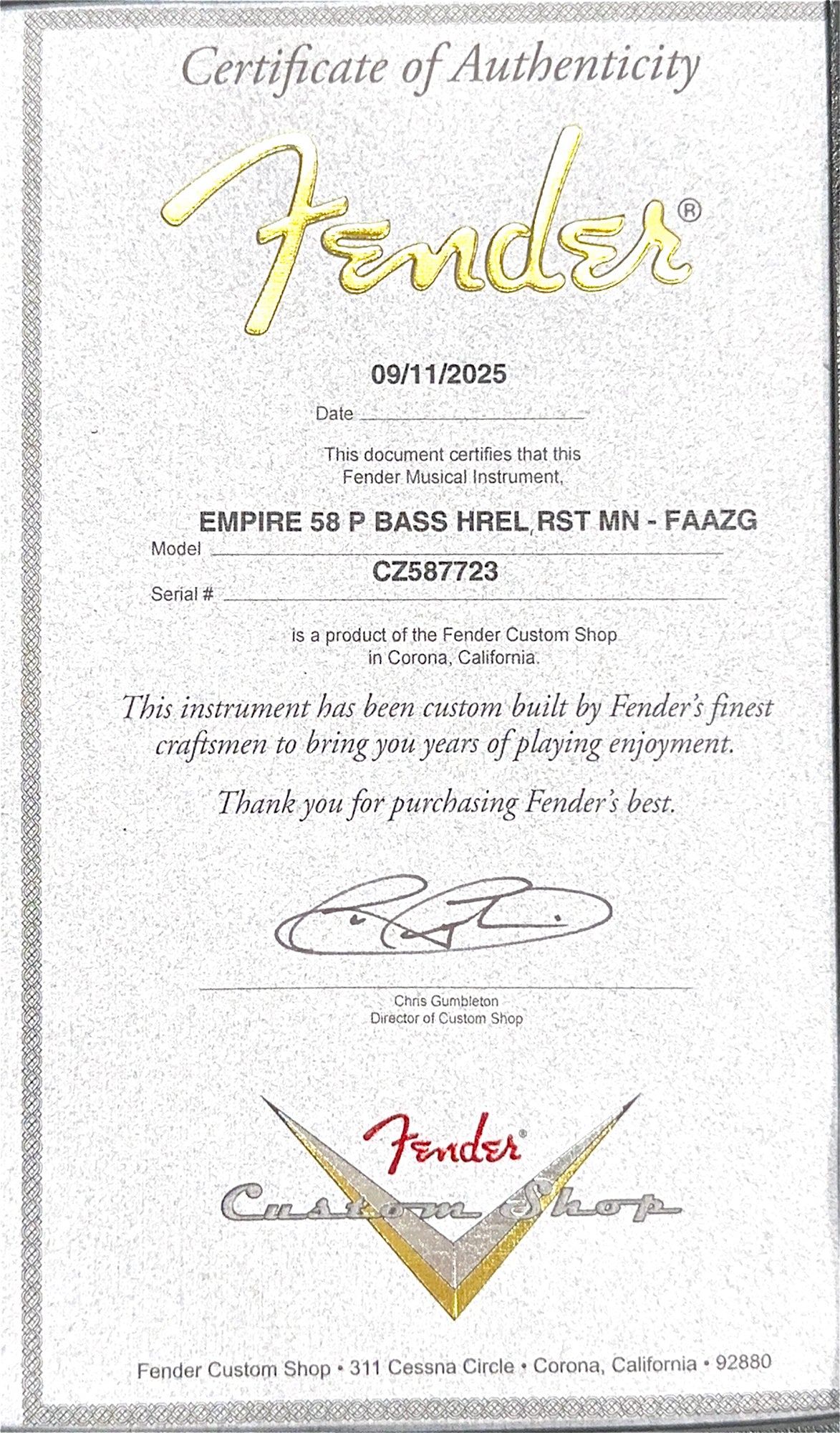The Fender Custom Shop Empire 58 Precision Bass was designed in-house by our resident bassist and Director of Sales, Anthony Pecora. Based off of his very own 58 Custom Shop P with a few nods to the 60’s models, this bass takes the best from both eras into a player-centric package.