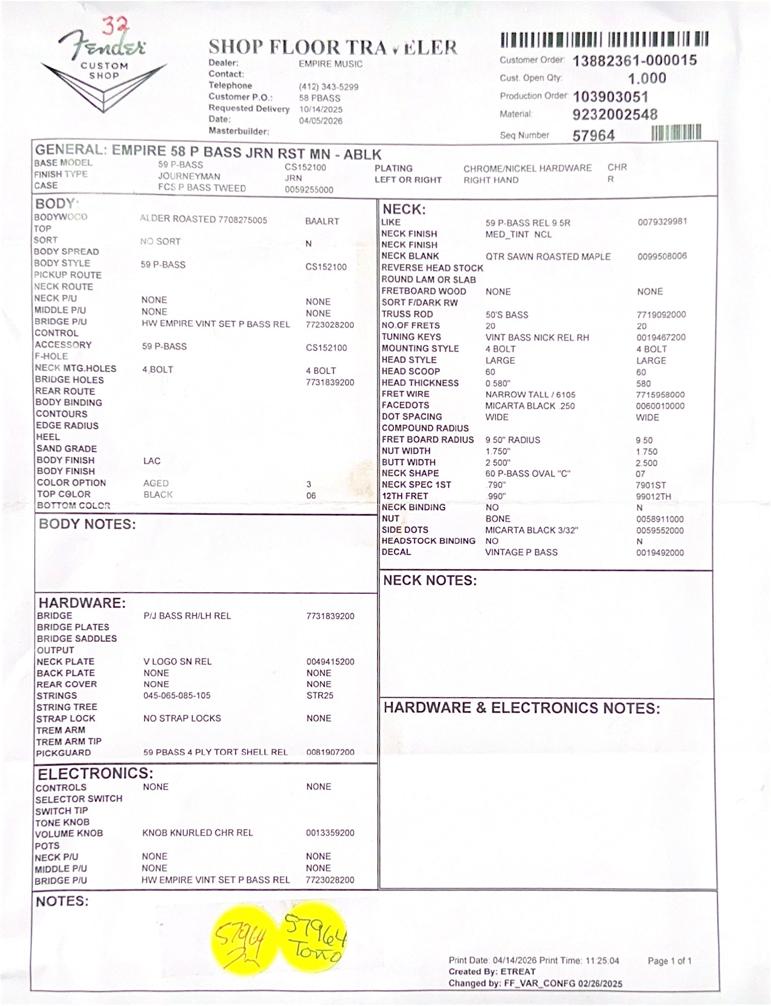 We are proud to include a full professional setup to factory spec before delivering your new Fender. Our world-class techs will dial in your instrument to make sure the playability is maximized!