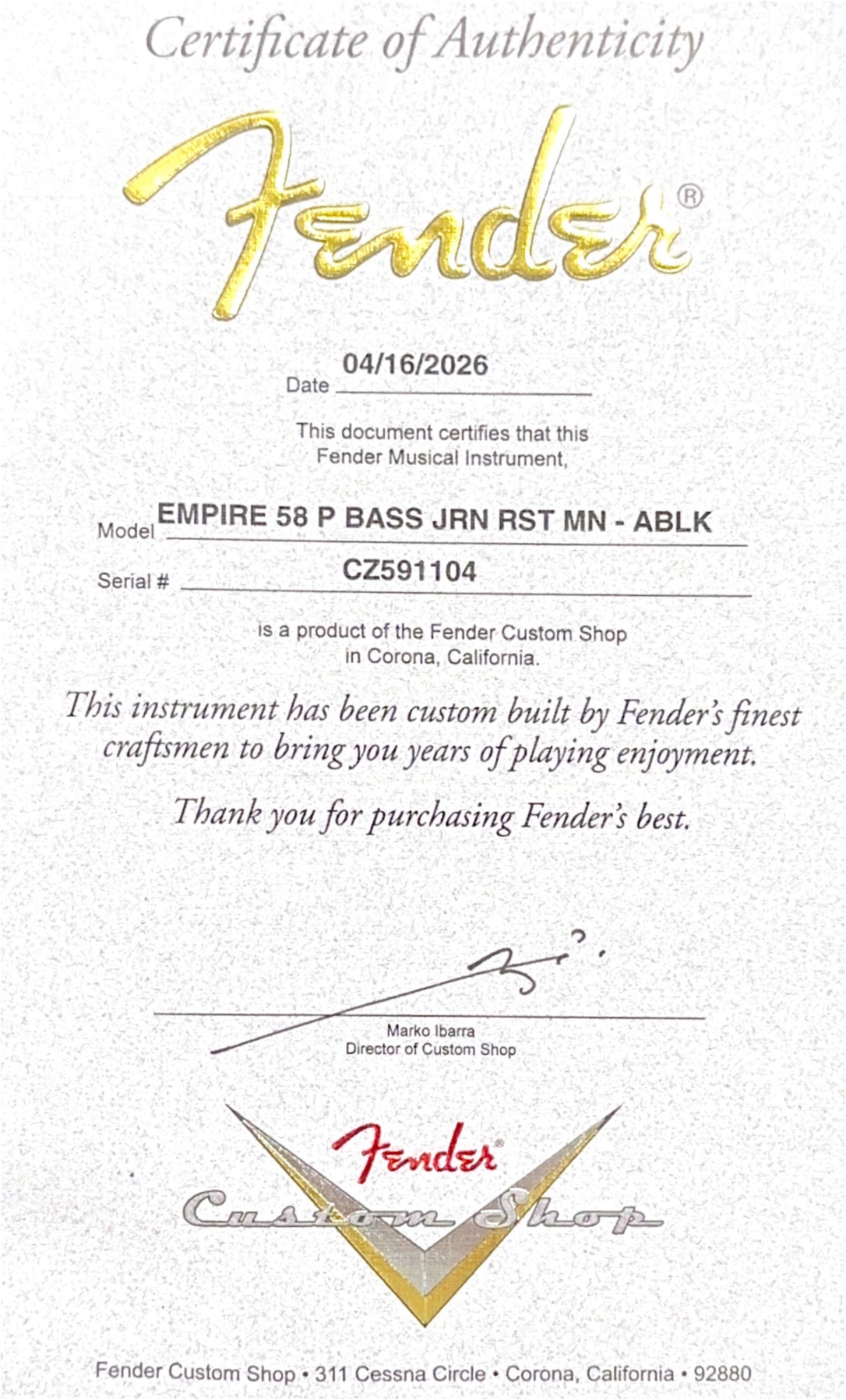 Fender Custom Shop Empire 58 Precision Bass Journeyman Relic - Aged Black #91104