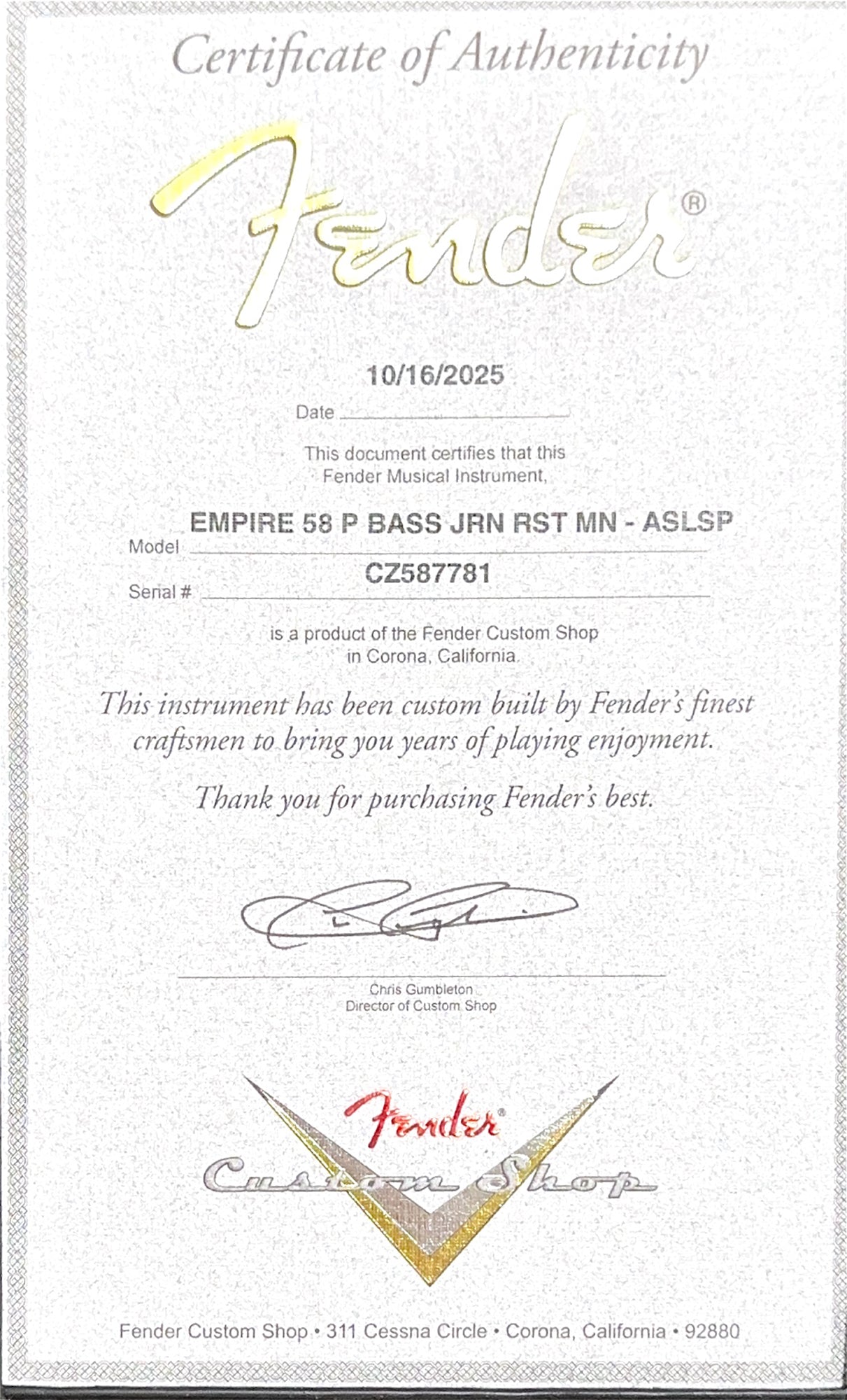Our Custom Shop Authorized technicians complete a full professional factory-spec setup and inspection before shipping or in-store pickup, ensuring an extraordinary playing experience!