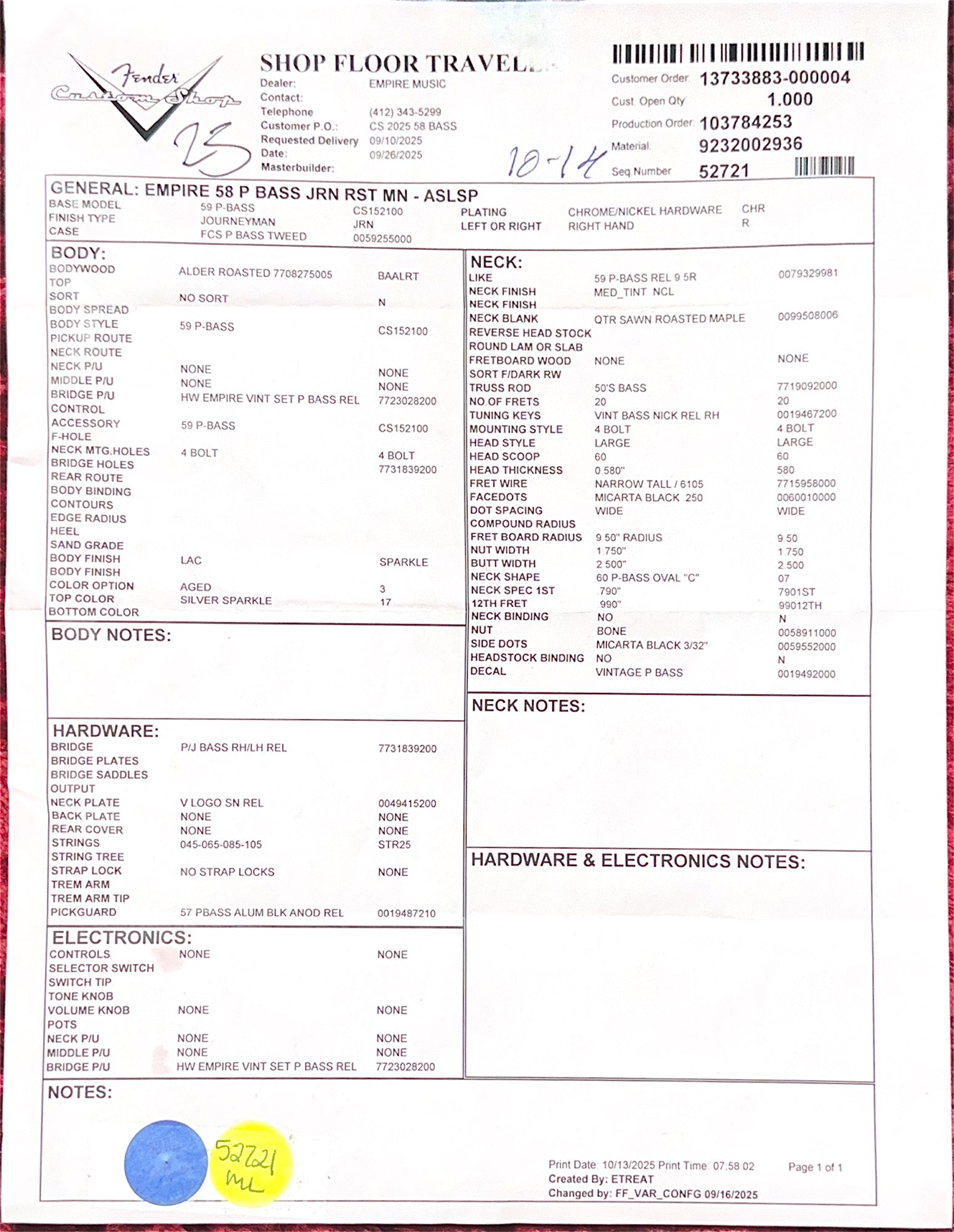 The Fender Custom Shop Empire 58 Precision Bass was designed in-house by our resident bassist and Director of Sales, Anthony Pecora. Based off of his very own 58 Custom Shop P with a few nods to the 60’s models, this bass takes the best from both eras into a player-centric package.