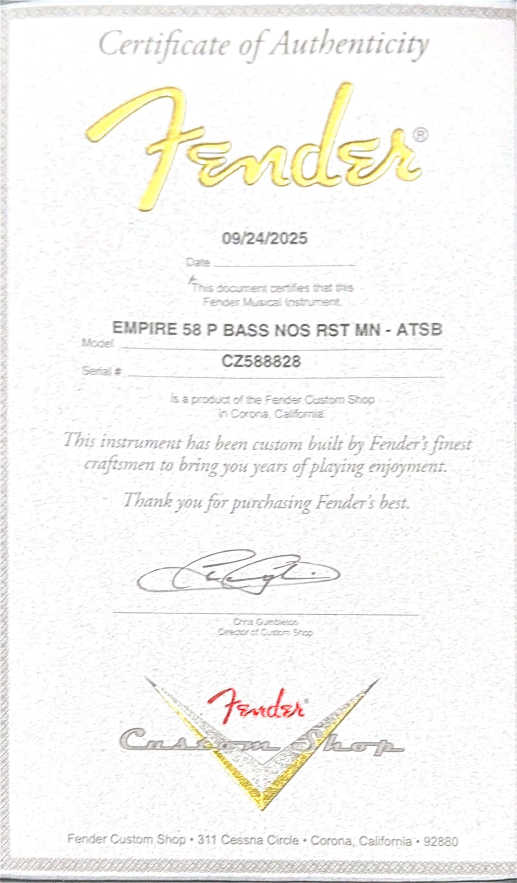 Fender Custom Shop Empire '58 Precision Bass NOS, Roasted Maple Neck, Antique Burst