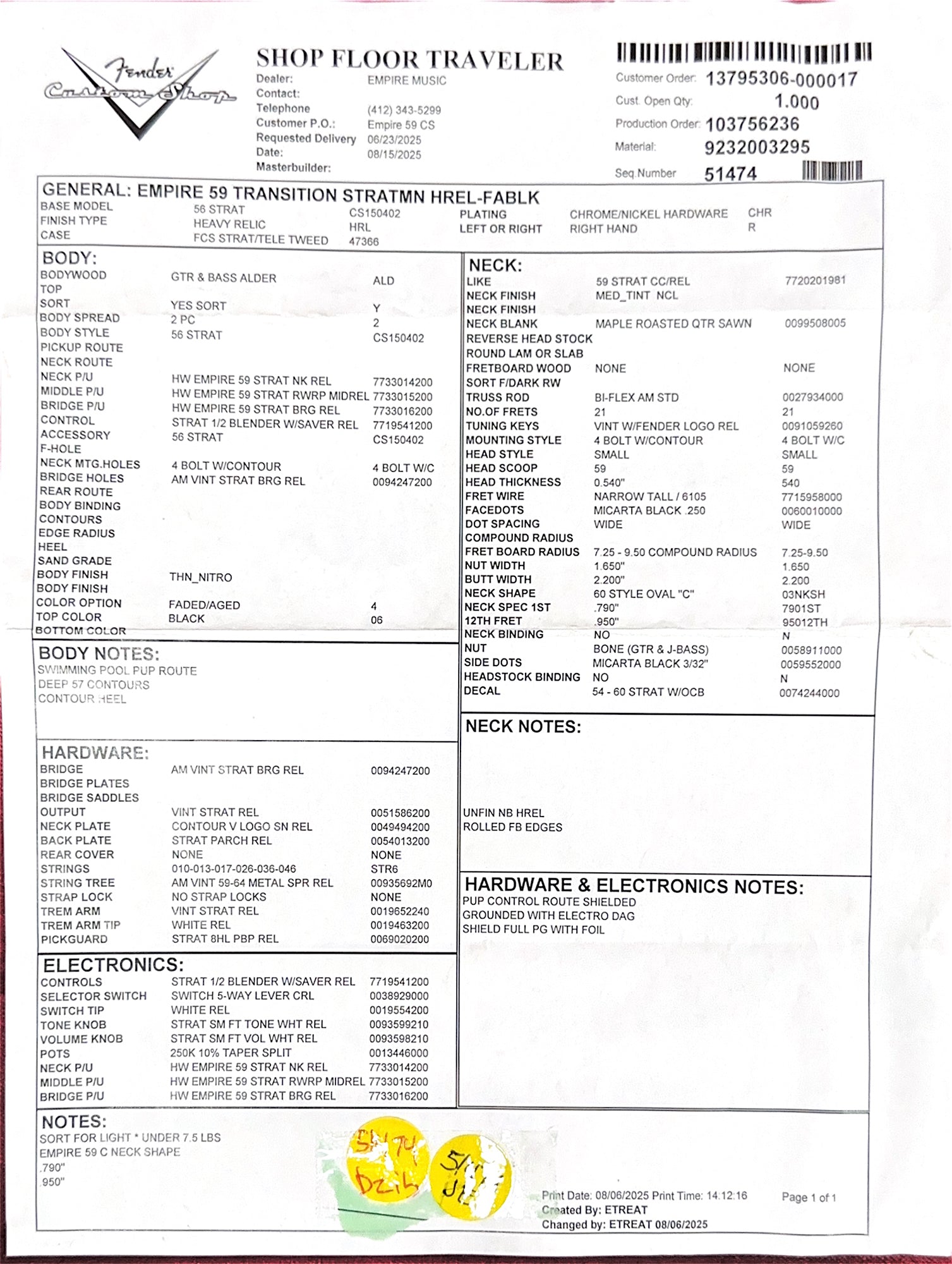 Our Custom Shop Authorized technicians complete a full professional factory-spec setup and inspection before shipping or in-store pickup, ensuring an extraordinary playing experience!