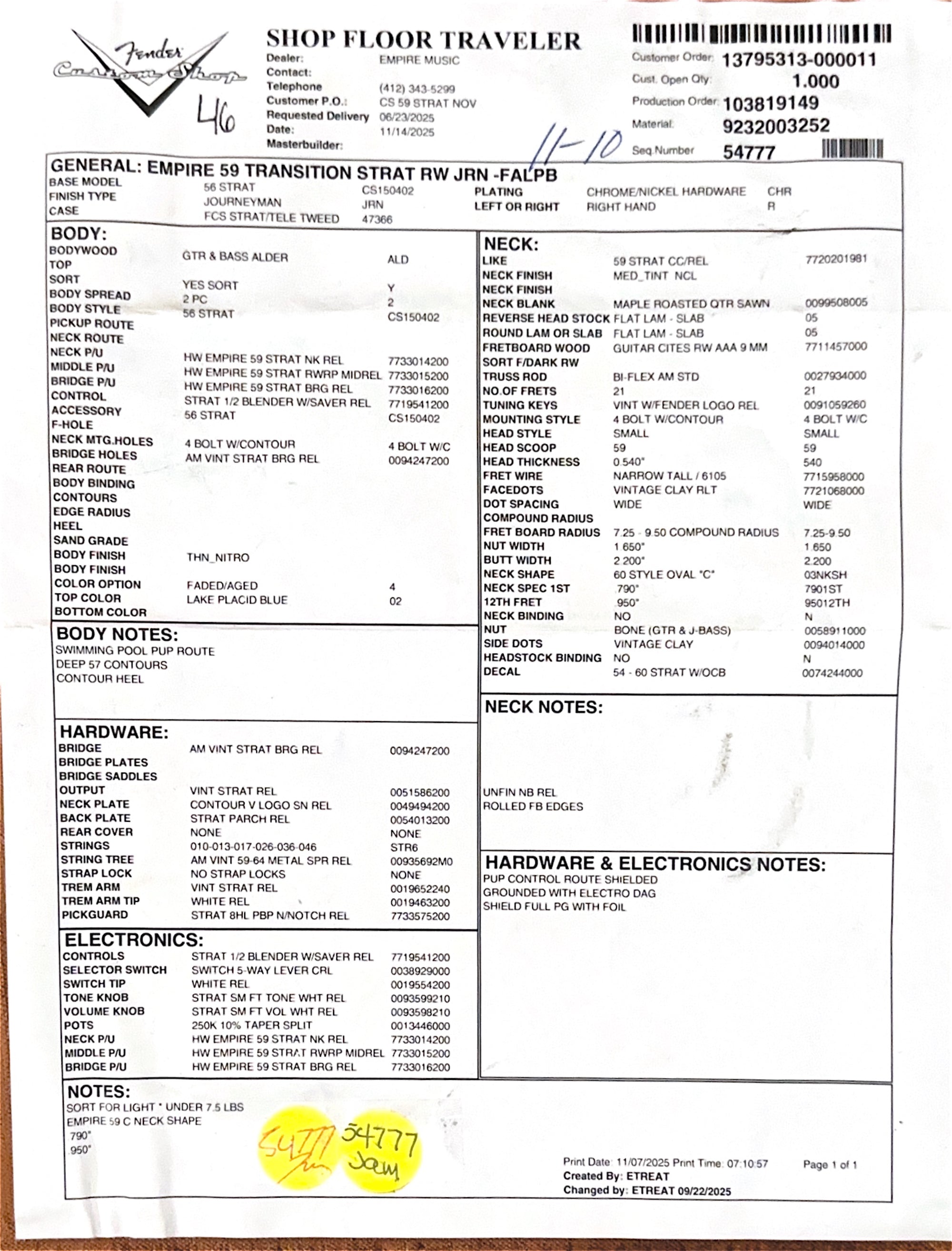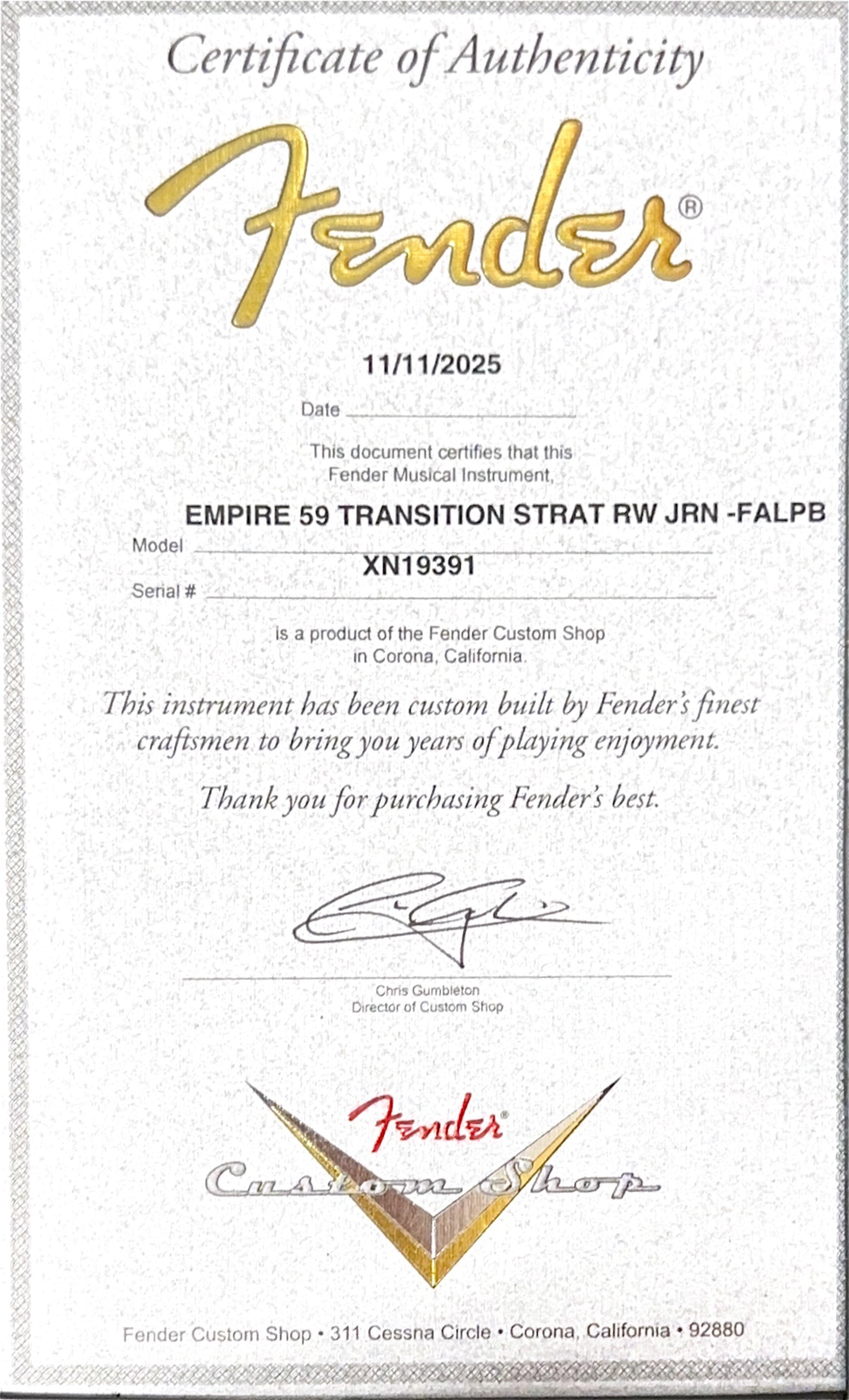 “For over 25 years, the Strat has been my go-to. The look, sound, and versatility of the Stratocaster, and the iconic heroes who play them, has been at the foundation of my experience as a musician. The Empire ‘59 Transition Strat draws on everything I love about the most expressive guitars ever made. Players will appreciate the familiar played-in neck and body feel, and the maturity and sweetness of our hand wound ‘59 pickups. These Strats are among the best I’ve played, and are a tribute to the deep connection between the Fender Stratocaster and the musicians who play them” - Justin, Empire Music