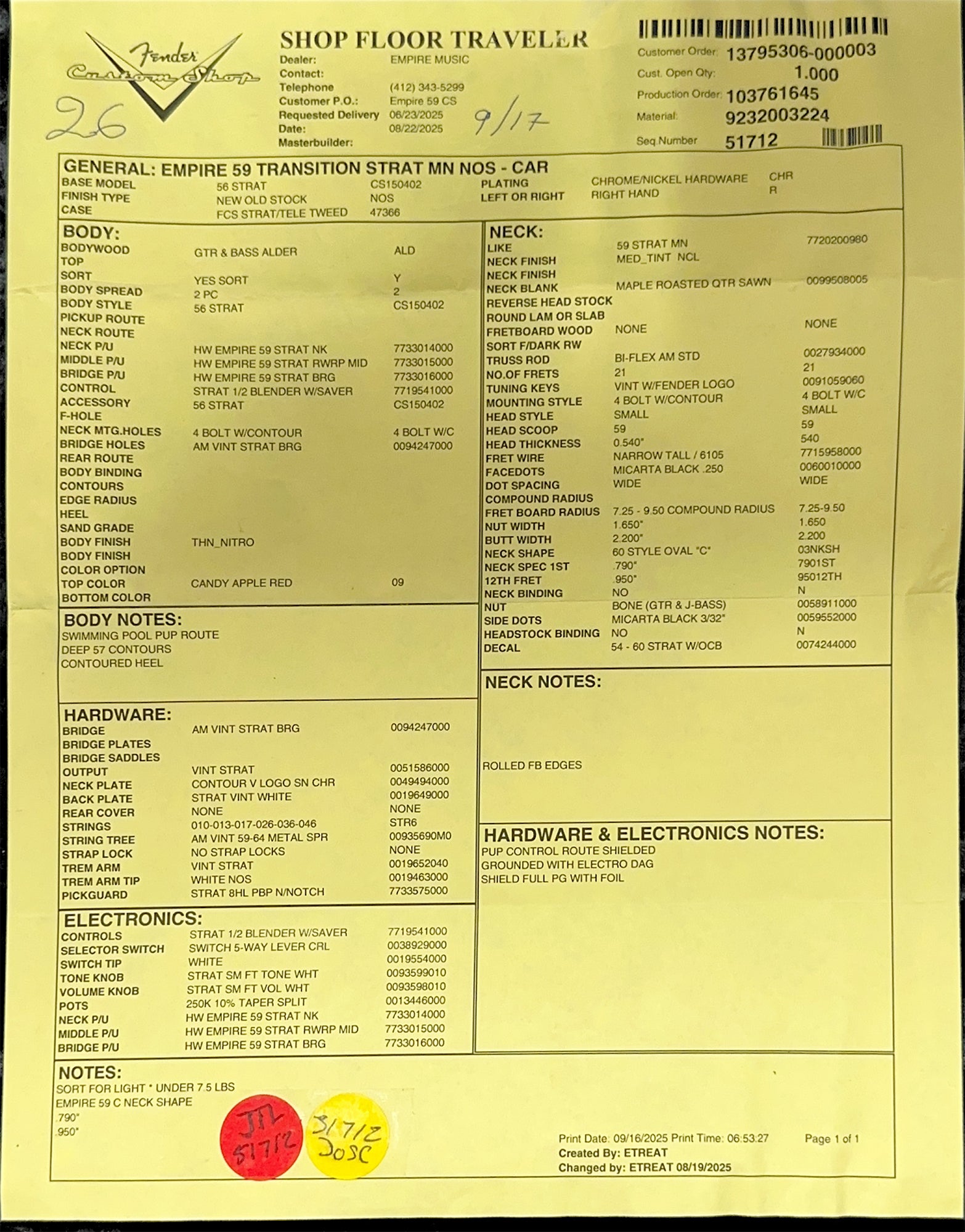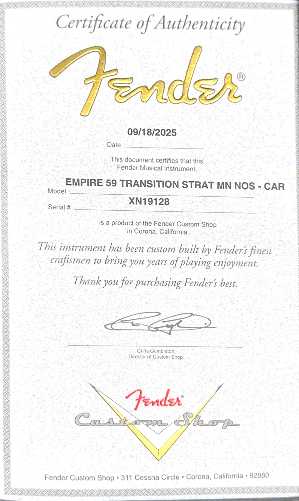 “For over 25 years, the Strat has been my go-to. The look, sound, and versatility of the Stratocaster, and the iconic heroes who play them, has been at the foundation of my experience as a musician. The Empire ‘59 Transition Strat draws on everything I love about the most expressive guitars ever made. Players will appreciate the familiar played-in neck and body feel, and the maturity and sweetness of our hand wound ‘59 pickups. These Strats are among the best I’ve played, and are a tribute to the deep connection between the Fender Stratocaster and the musicians who play them” - Justin, Empire Music