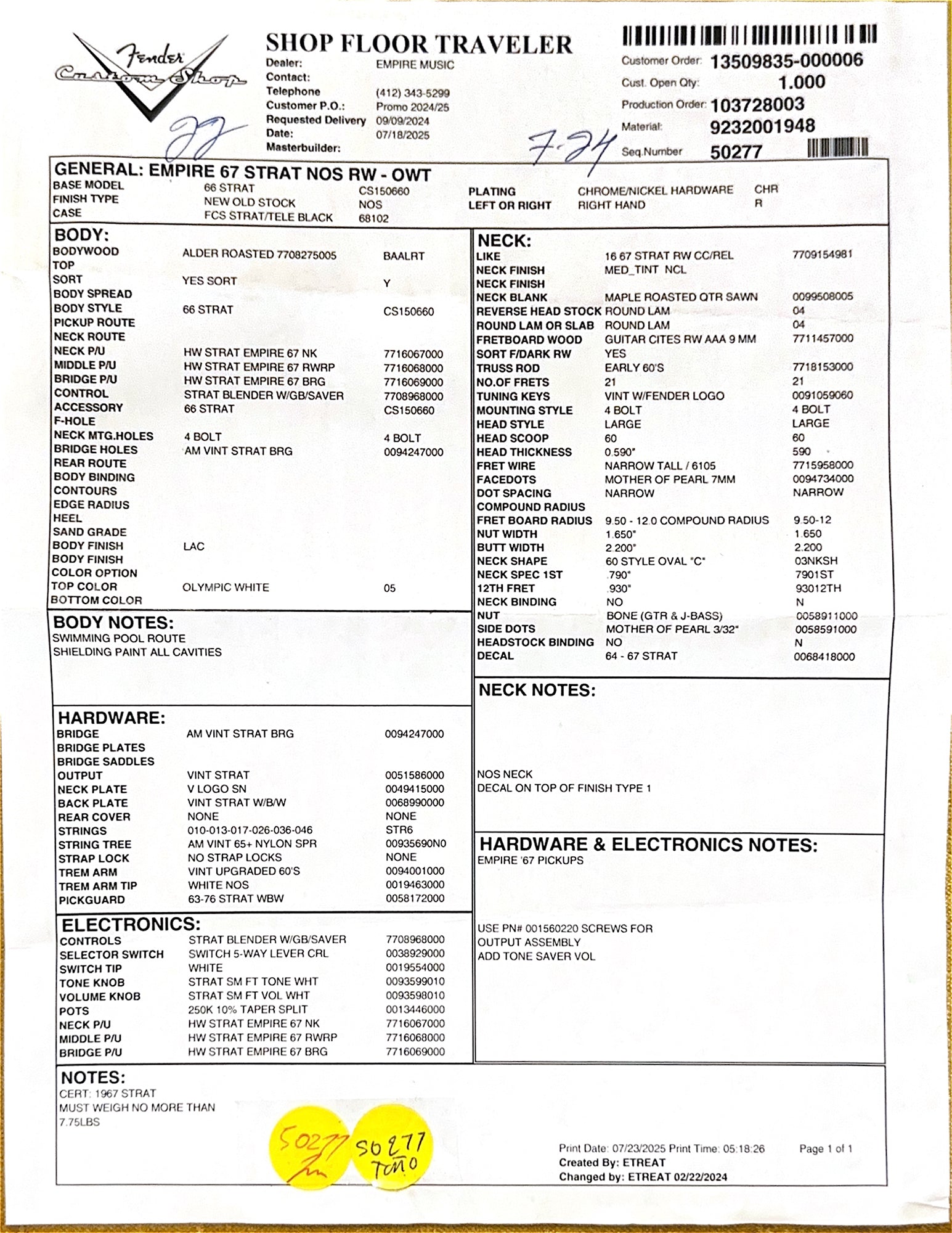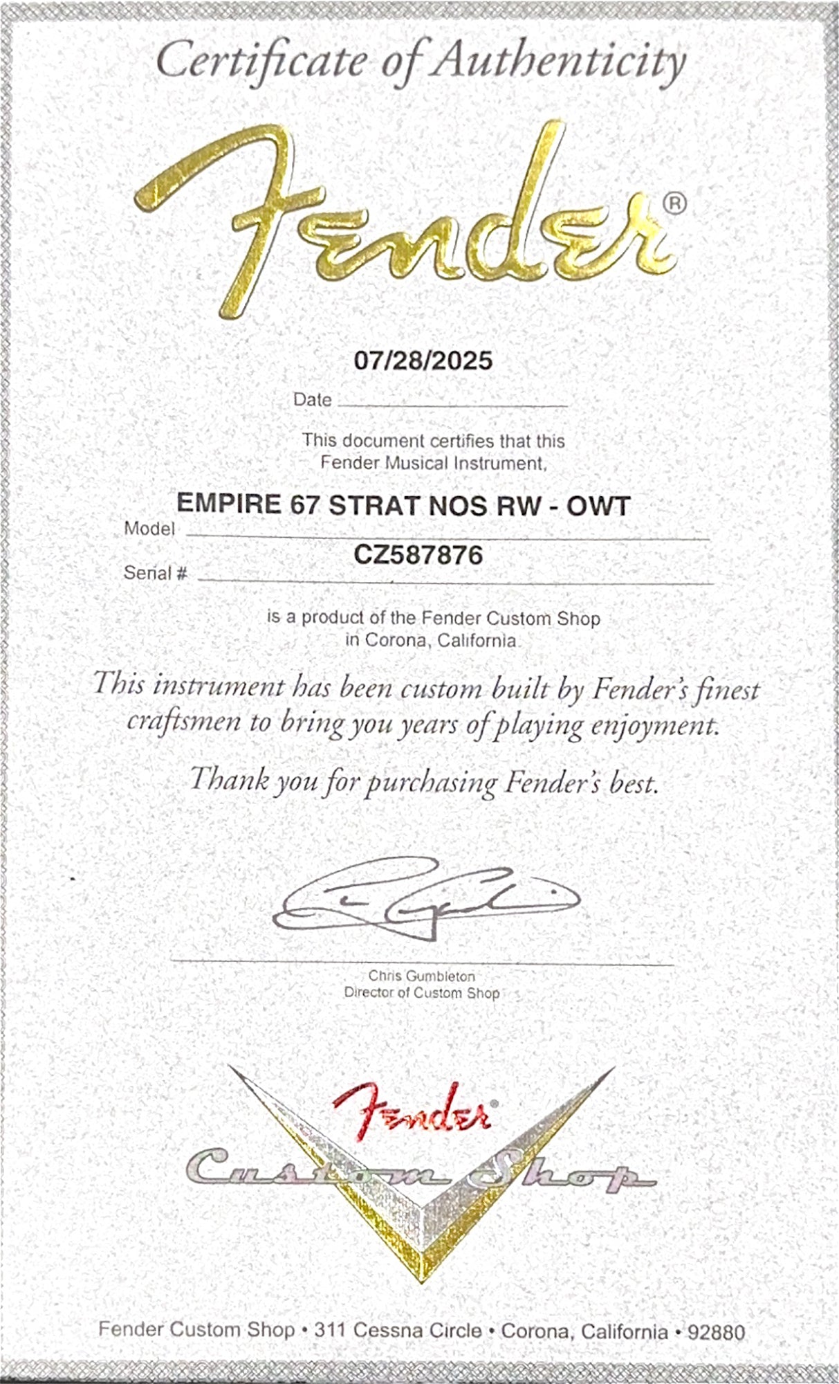 The Empire ‘67 Stratocaster is one of the most sought after and best-selling Fender Custom Shop models in the world. Designed by Empire’s own guitar experts and built by the master craftsmen at Fender Custom Shop, the Empire Music Exclusive ‘67 Stratocaster guitars have become a true classic.