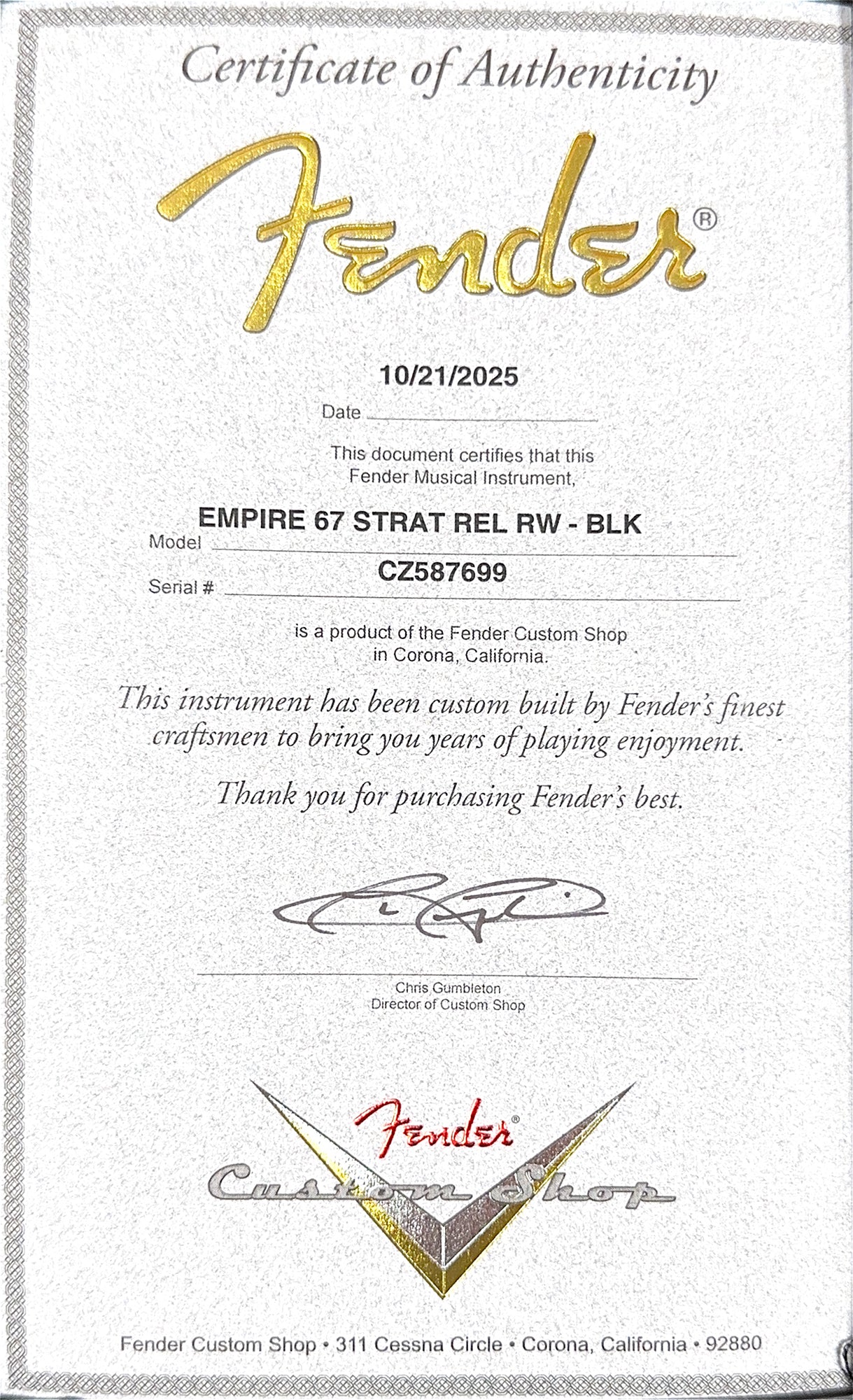 The Empire ‘67 Stratocaster is one of the most sought after and best-selling Fender Custom Shop models in the world. Designed by Empire’s own guitar experts and built by the master craftsmen at Fender Custom Shop, the Empire Music Exclusive ‘67 Stratocaster guitars have become a true classic.