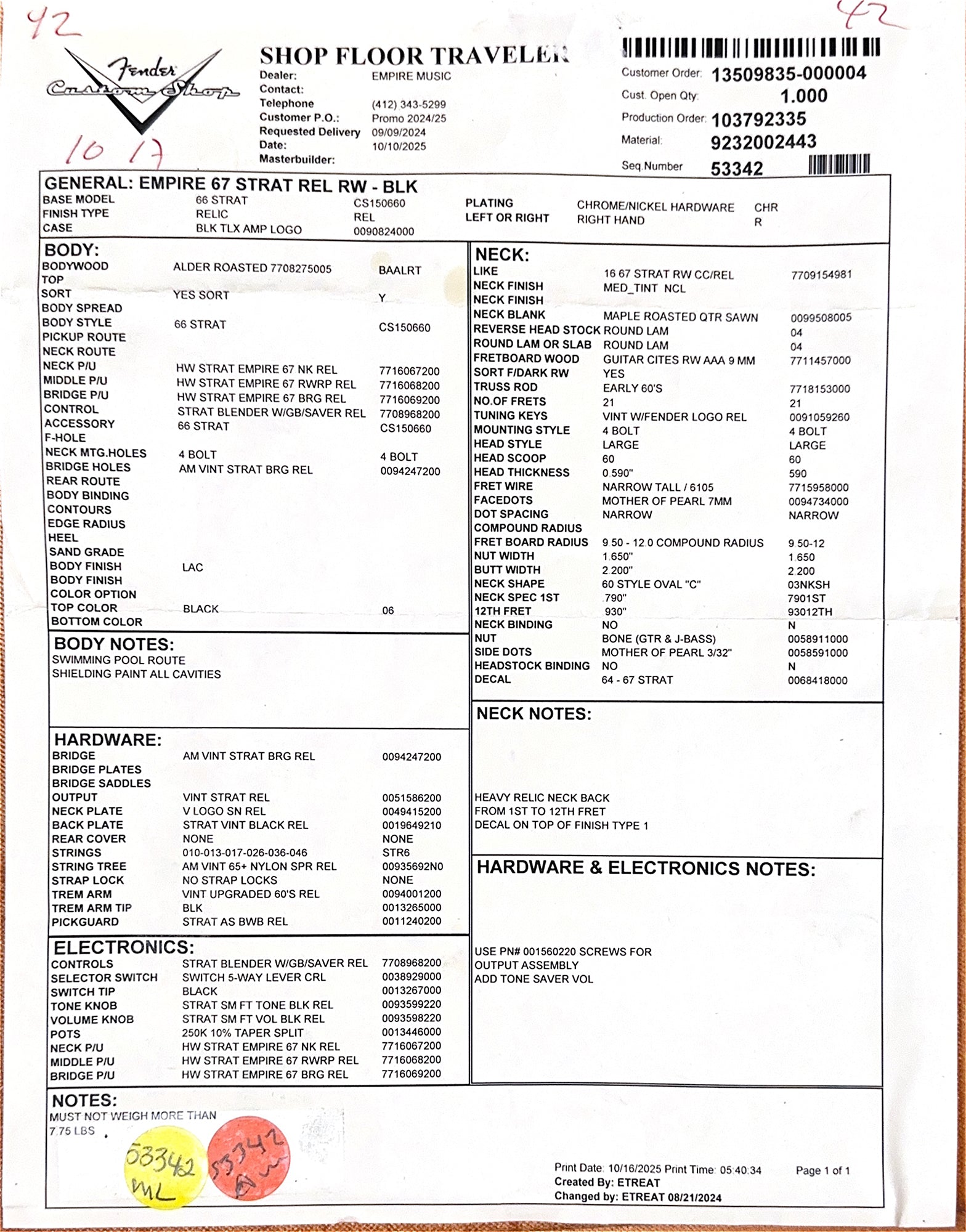 Our Custom Shop Authorized technicians complete a full professional factory-spec setup and inspection before shipping or in-store pickup, ensuring an extraordinary playing experience!