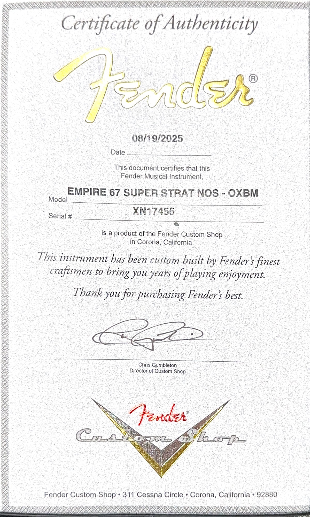 Fender Custom Shop Empire 67 Super Stratocaster HSS NOS, Roasted Maple Neck/Fingerboard, Oxblood Metallic