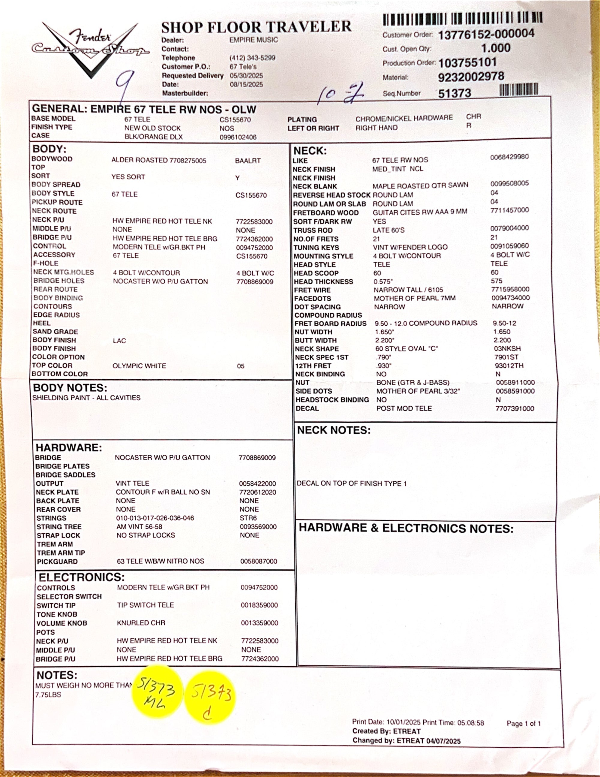 Our Custom Shop Authorized technicians complete a full professional factory-spec setup and inspection before shipping or in-store pickup, ensuring an extraordinary playing experience!