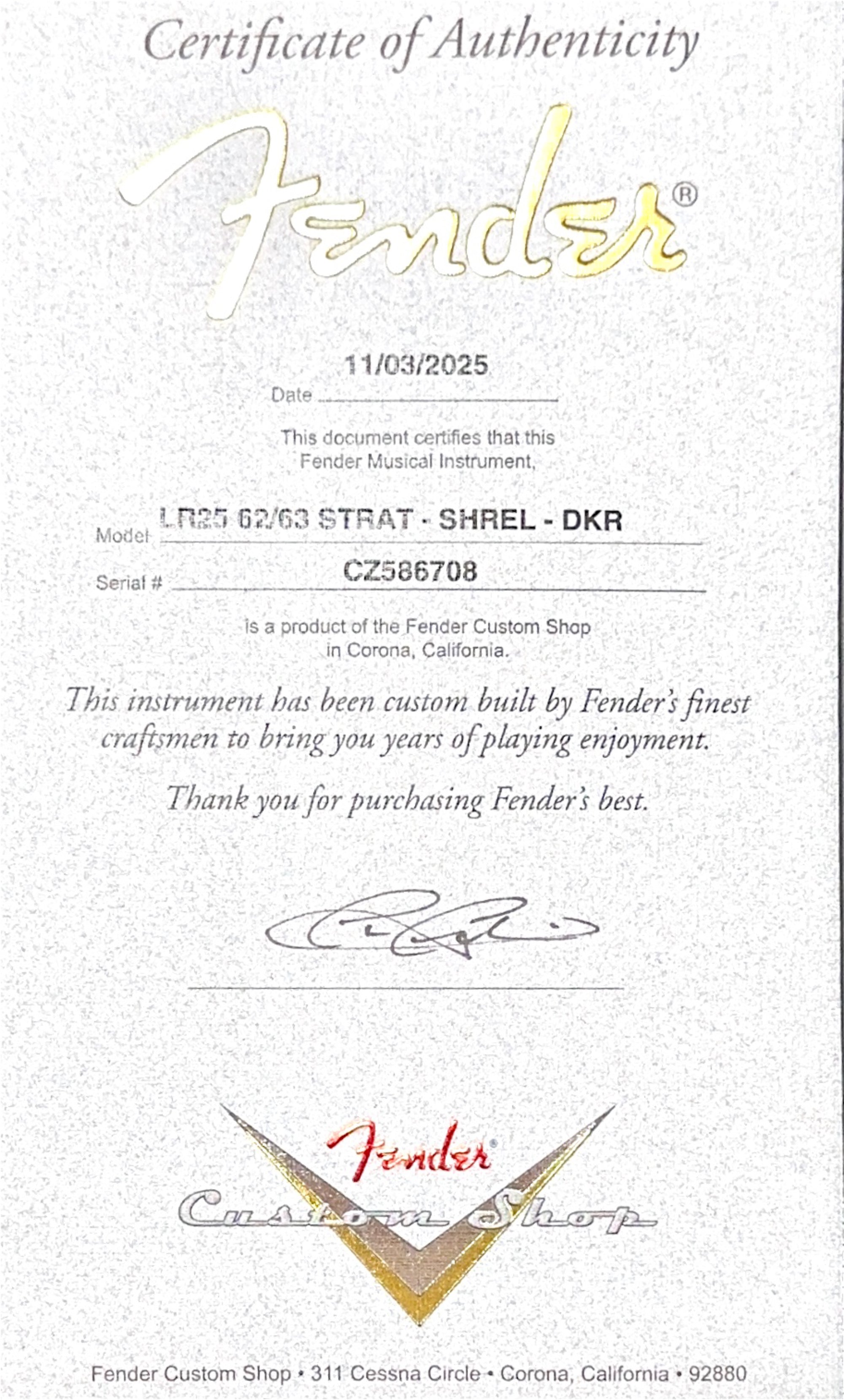 Our Custom Shop Authorized technicians complete a full professional factory-spec setup and inspection before shipping or in-store pickup, ensuring an extraordinary playing experience!
