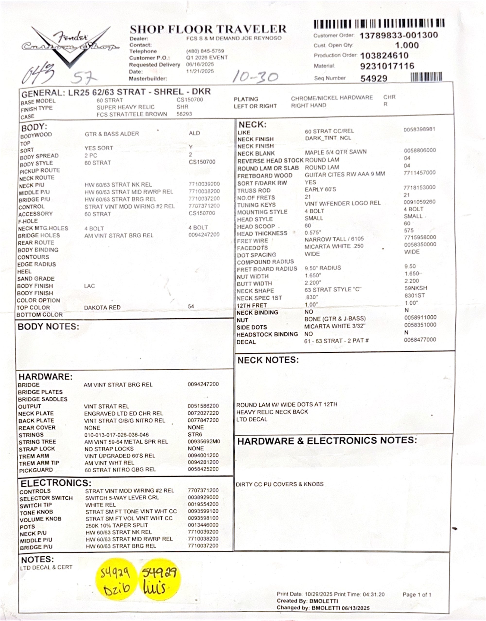 Fender Custom Shop LR25 '62/'63 Stratocaster Super Heavy Relic - Dakota Red #86708