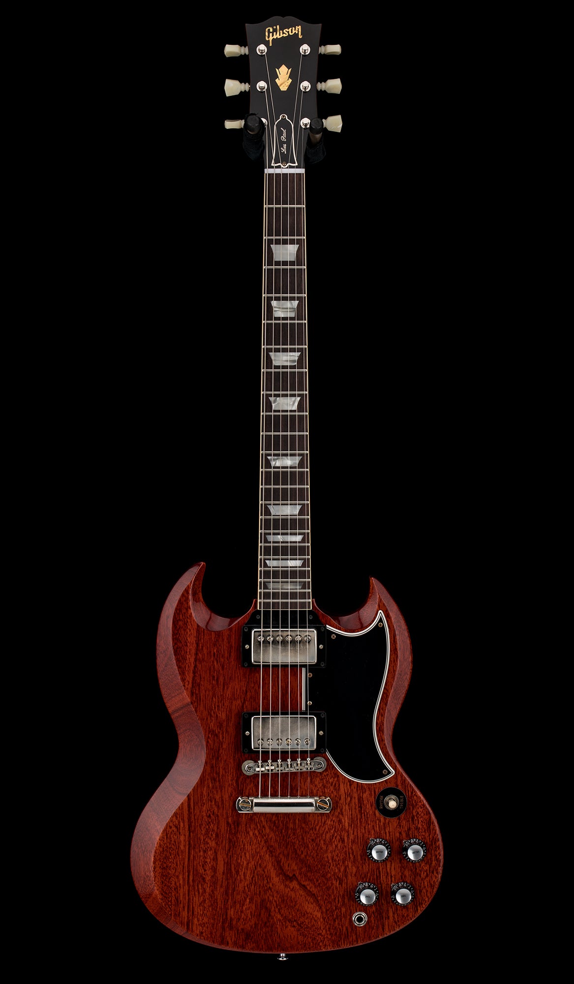 A 1960s SG has been the favorite of some of the most iconic guitarists ever...Angus Young, Tony Iommi, Robby Krieger, George Harrison, Dickey Betts, Gary Rossington, and Eric Clapton, to name a few. The SG's devilish points and curves, blistering humbucker tone and fast-playing neck help to make it one of the most coveted and revered 1960s Gibson models. This Custom Shop Historic Reissue SG continues the legendary magic of the originals with all solid woods, historic hide-glue construction methods, the finest vintage replica parts and materials available and the instantly-recognizable, powerful tone of pure rock 'n roll.