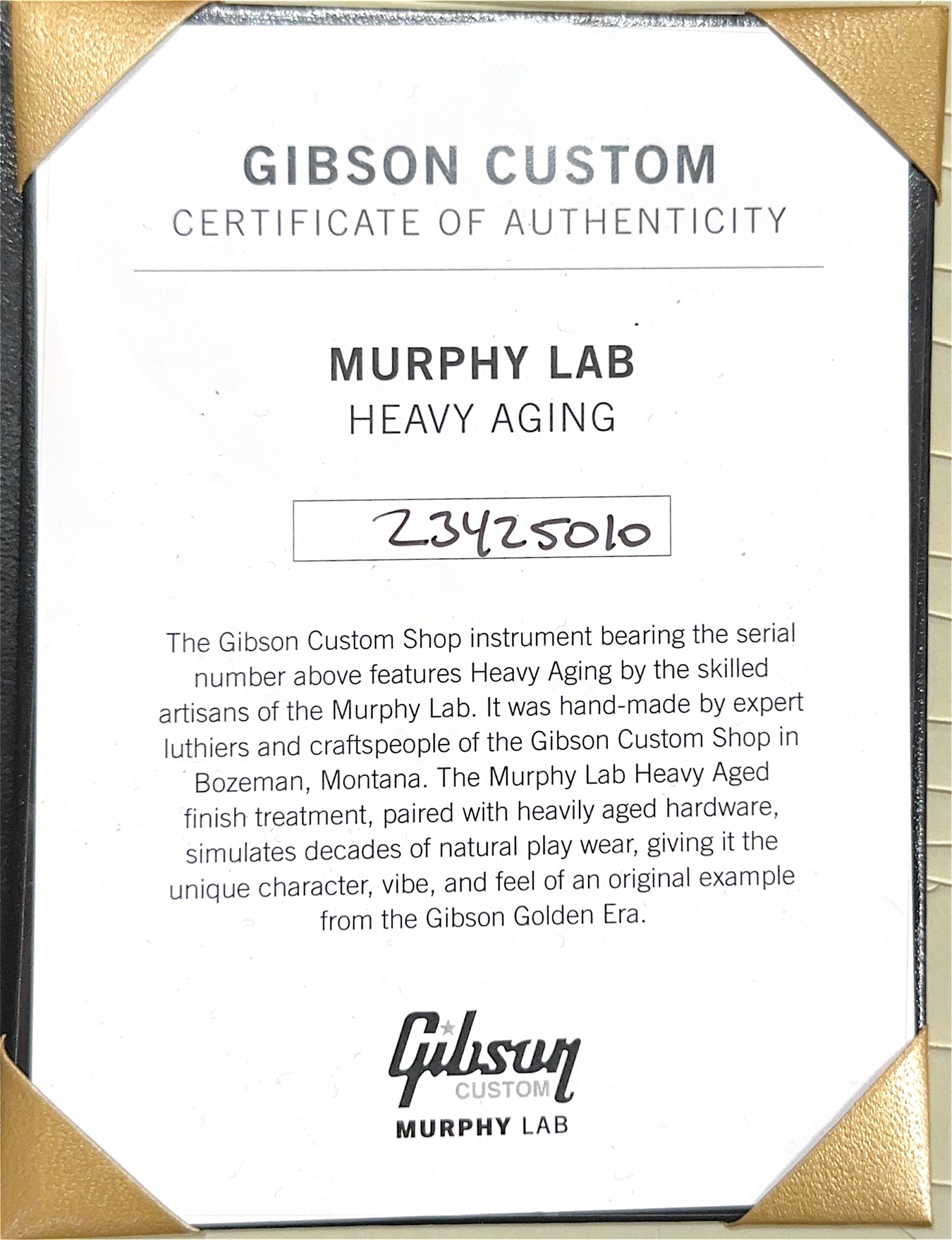 The guitar pictured is the actual guitar that you will receive. It comes with Gibson's Factory Warranty and our 100% satisfaction guarantee! It will be professionally set up and ready to play before it leaves our store.