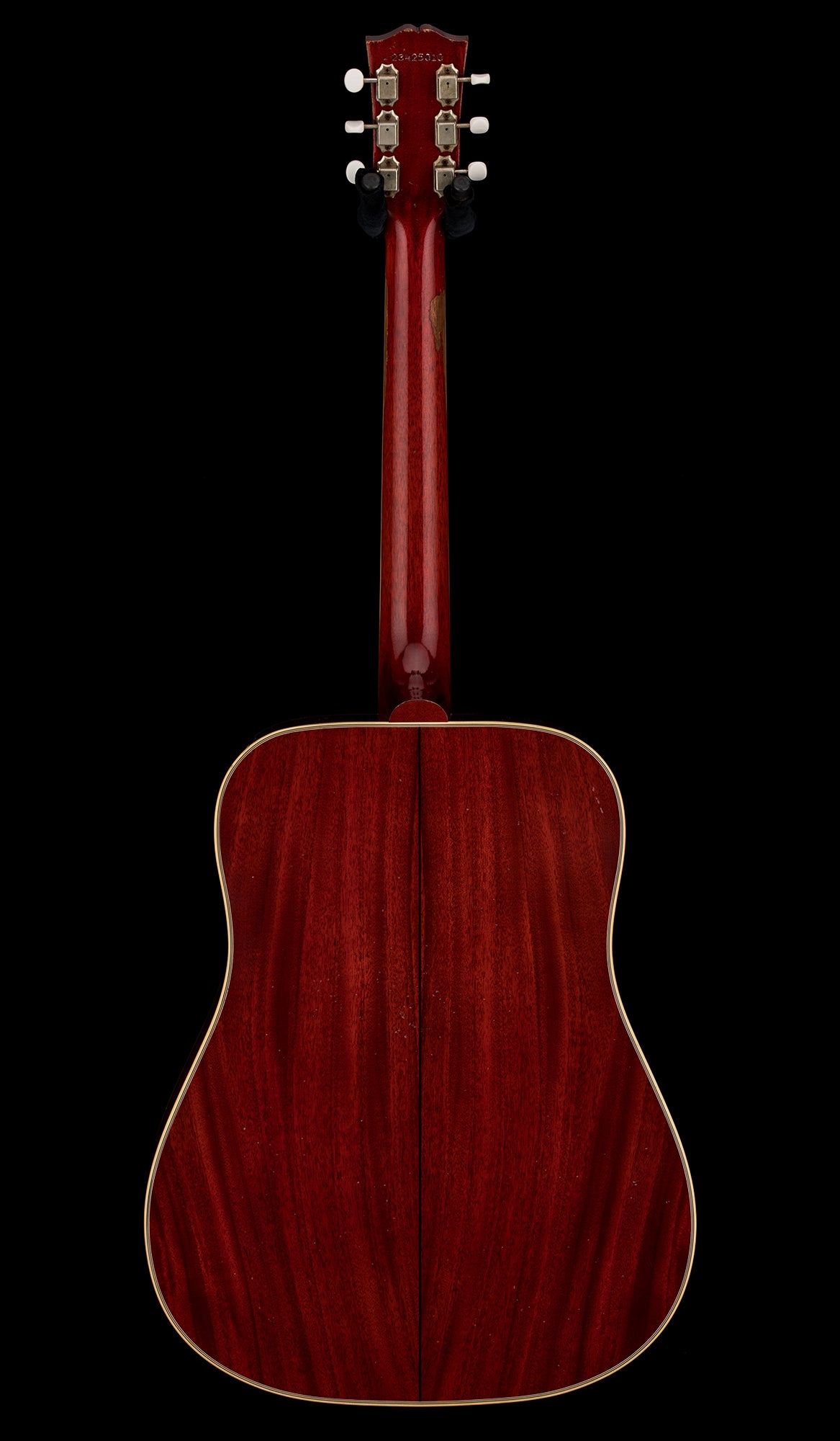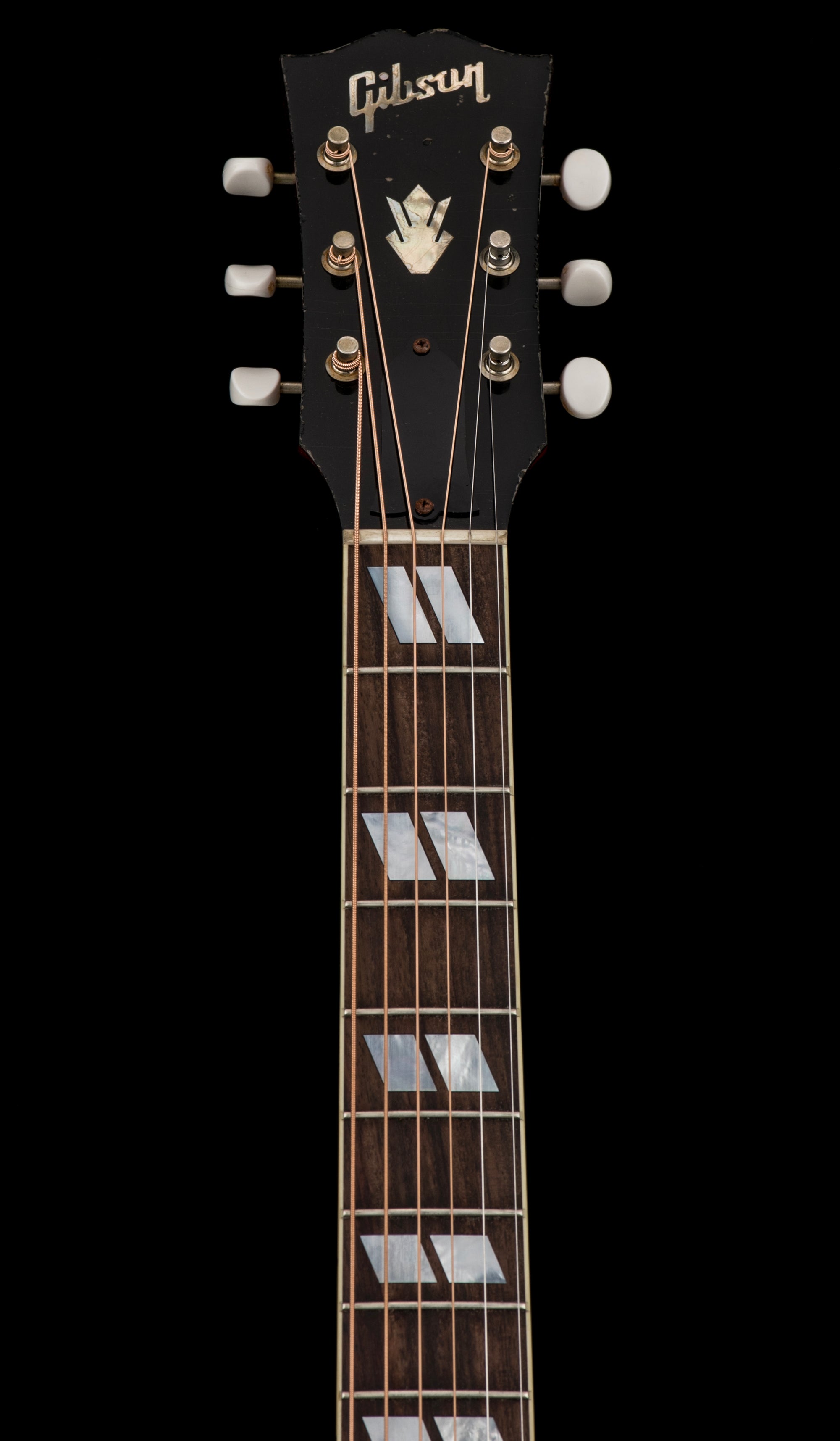This 1963 Country Western features a thermally aged Sitka spruce top that is supported with Gibson’s traditional hand-scalloped X-bracing for vintage-inspired tone, solid mahogany back and sides with multi-ply top and back binding, a mahogany neck with a 24.75” (628.65 mm) scale length, round profile, and a bound Indian rosewood fretboard with a 12” fretboard radius, 20 standard frets, and mother-of-pearl parallelogram inlays. The neck’s compound dovetail neck-to-body joint is fitted using hot hide glue. The rosewood bridge is a traditional belly-up design, and the bridge saddle, nut, and bridge pins are all bone, and the classic Country Western tortoise pickguard is aged. The tuning machines are smooth-turning, aged nickel Gotoh® tuners with white buttons for solid tuning stability. The 1963 Country Western features heavy aging by the artisans of the Murphy Lab to give it the vibe, look, and playing feel of a well-loved, longtime musical companion. Expect a heavy weather-checked finish, heavy belt buckle wear, light arm wear, and light neck wear. Here’s your chance to own one of Gibson’s most requested vintage acoustic guitar models, with all the tone, vibe, playability, and appearance of a well-seasoned vintage original without the vintage price tag and potential issues that can accompany a sixty-year-old guitar. A period-correct black with goldenrod interior hardshell case from Gibson Custom is included, along with a certificate of authenticity.