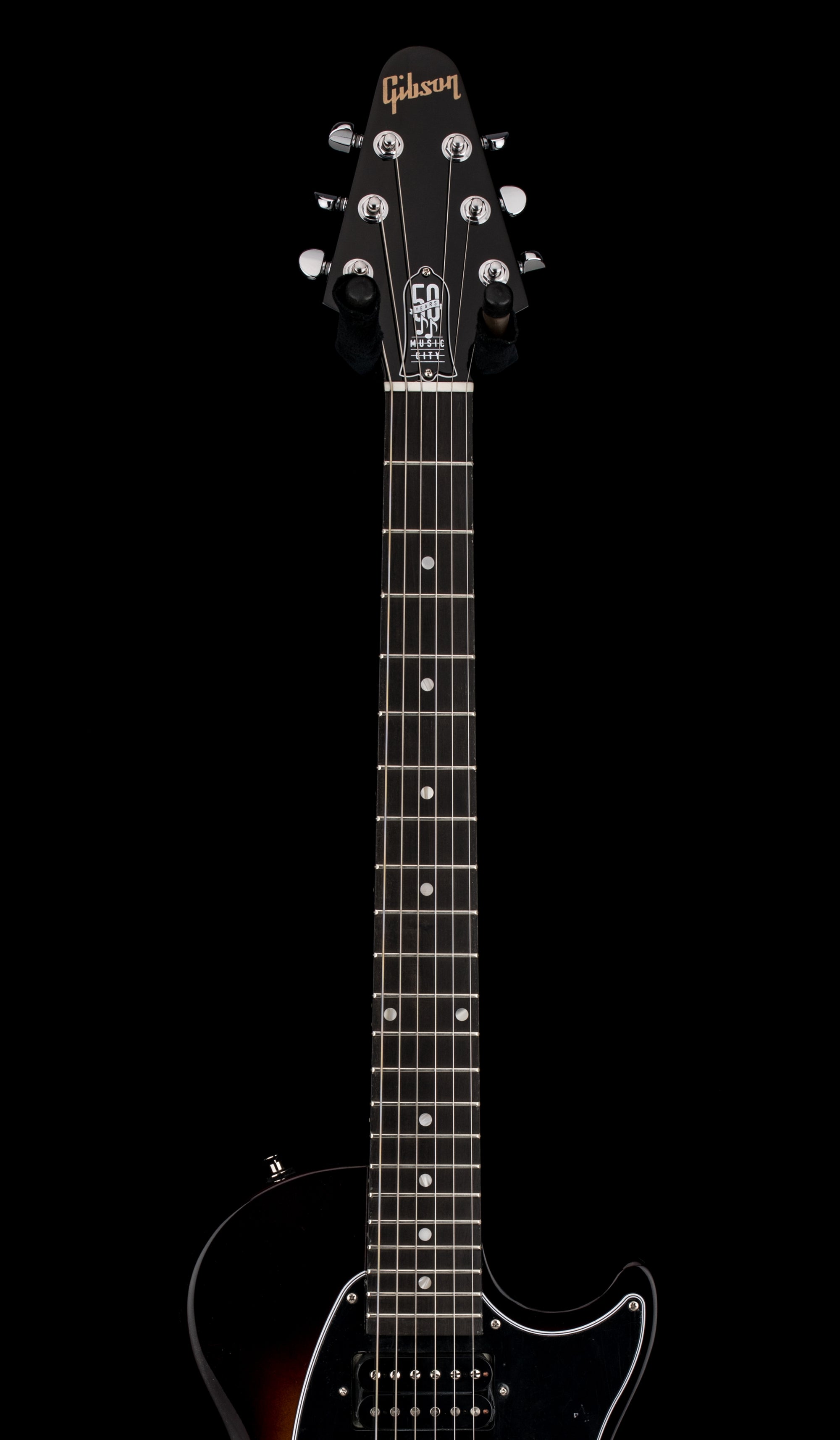 The Les Paul™ Music City Special – 50th Anniversary is an updated, modern twist on two historical Gibson models, taking much of its inspiration from the 70s-era Marauder with a touch of the Music City Junior in its DNA. Over the years, the Marauder has been used by artists from Adam Jones to Paul Stanley. This unique commemorative model pays tribute to the early days of Gibson’s Nashville production and celebrates Gibson’s 50 years of producing world-class guitars in Music City while delivering outstanding value to modern players. The lightweight, contoured body is solid poplar. The maple neck has a fast-playing and comfortable SlimTaper™ profile and is equipped with a striped ebony fretboard that is adorned with acrylic dot inlays and outfitted with 22 medium jumbo frets. The 12” fretboard radius makes first-position chords and string bends higher up the fretboard equally effortless. The hardware is chrome-plated, including the Nashville Tune-O-Matic™ bridge, aluminum Stop Bar tailpiece Grover® Mini Rotomatic® tuners, and output jack plate cover. A black 5-ply pickguard holds two Gibson 70s Tribute humbucker™ pickups, which are wired to an intuitive and comfortable control layout consisting of master volume and master tone controls with black Top Hat knobs and a three-way pickup selector toggle switch. A premium soft shell case is included to keep the Les Paul Music City Special - 50th Anniversary safe when stored or in transport. The Les Paul Music City Special - 50th Anniversary is available in Ebony, Wine Red, and Tobacco Burst gloss nitrocellulose lacquer finishes, and each has a commemorative 50th Anniversary truss rod cover. The Les Paul Music City Special - 50th Anniversary model is limited to only 650 instruments in each of the three colors, so make sure you get your favorite while you still can!