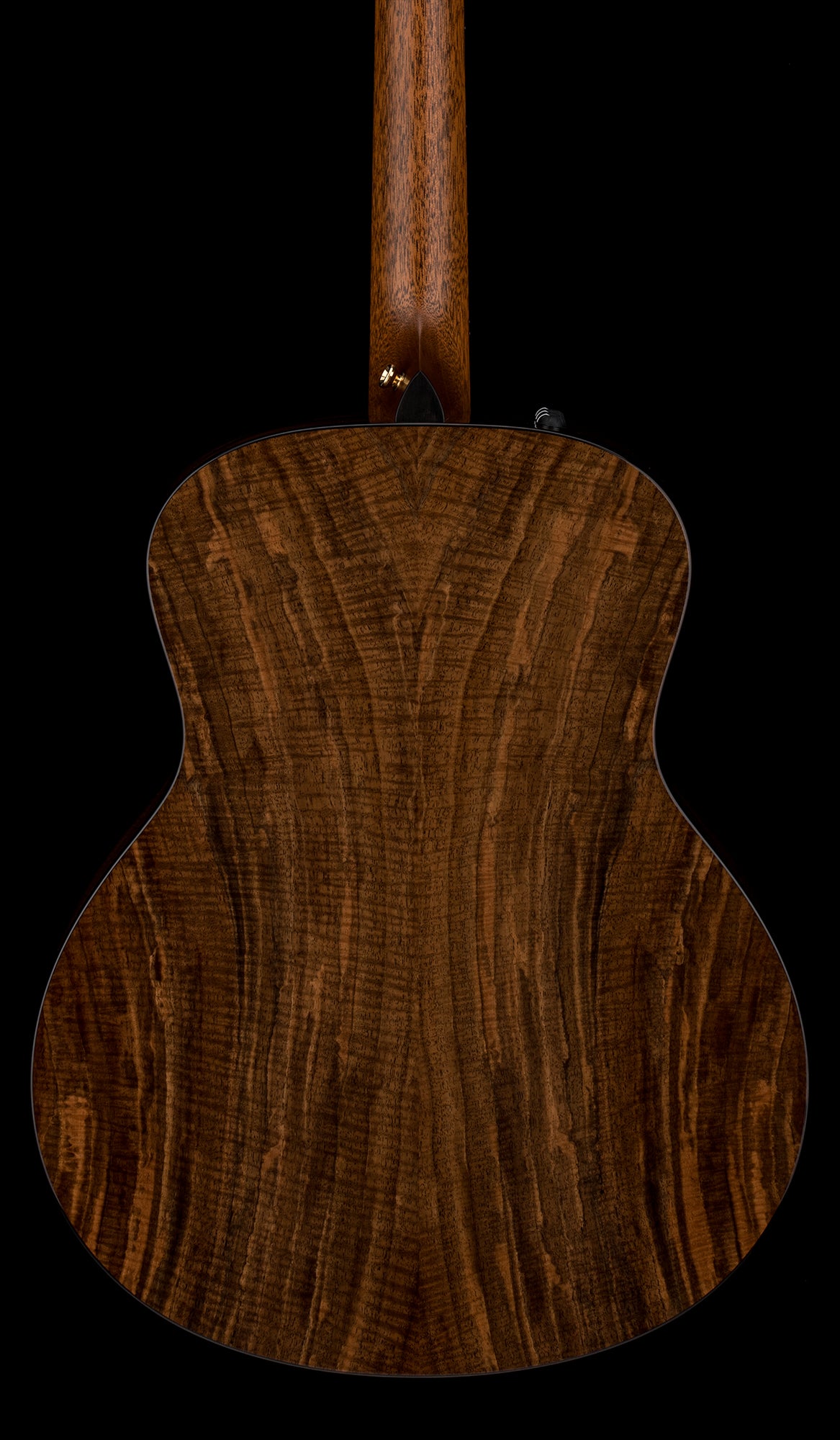 This Custom Shop Grand Symphony was originally created for Alamo Music. It features a soundport cutaway, and hand selected wood from Alamo Music's visit to the Taylor factory. In collaboration with Taylor CEO Andy Powers they chose a special piece of highly figured Claro Walnut dubbed the "Queens Walnut" from a specific tree that had very little wood left. Other features include a Lutz spruce top, hand selected figured ebony fingerboard and bridge, mahogany neck, Sitka spruce V-Class bracing, Gotoh 510 tuners, and Taylor ES-2 electronics.